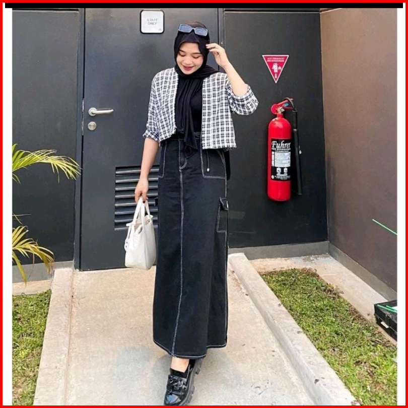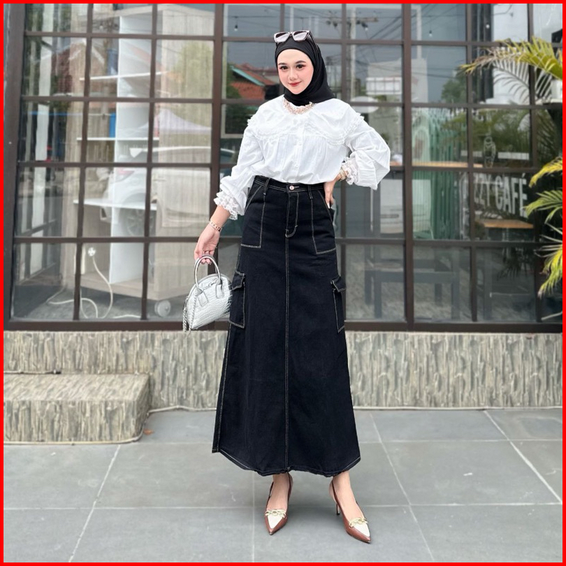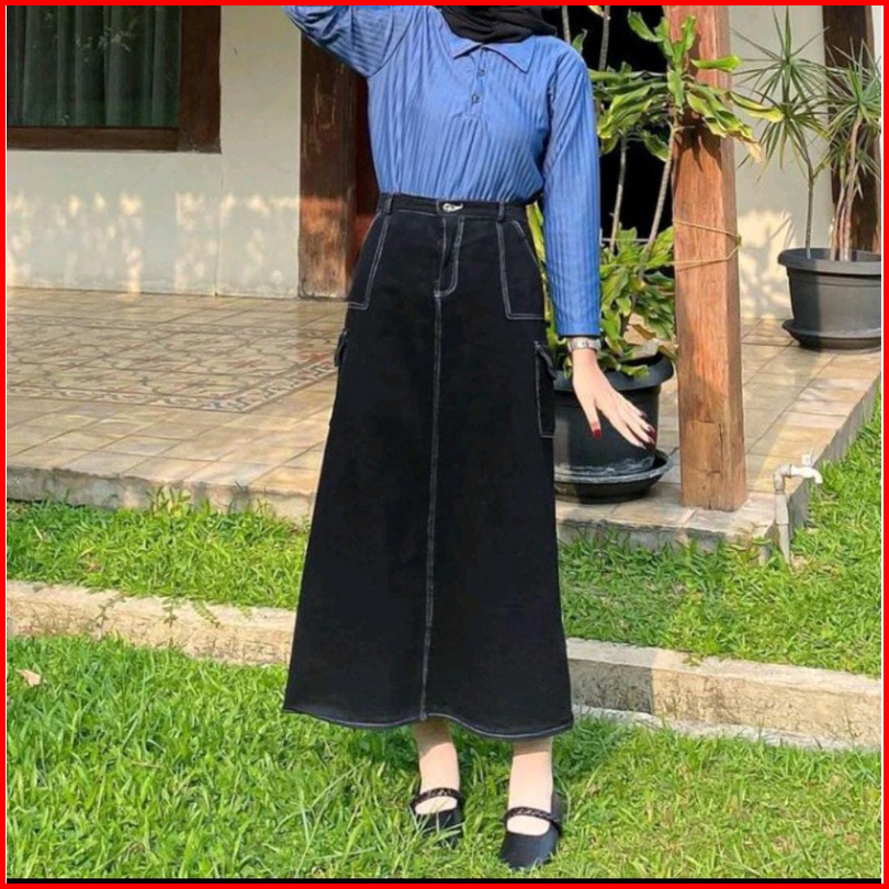 Denimstore - Highwaist Rok Cargo Jeans Wanita Rok Jeans Skirt Theana Korean Style