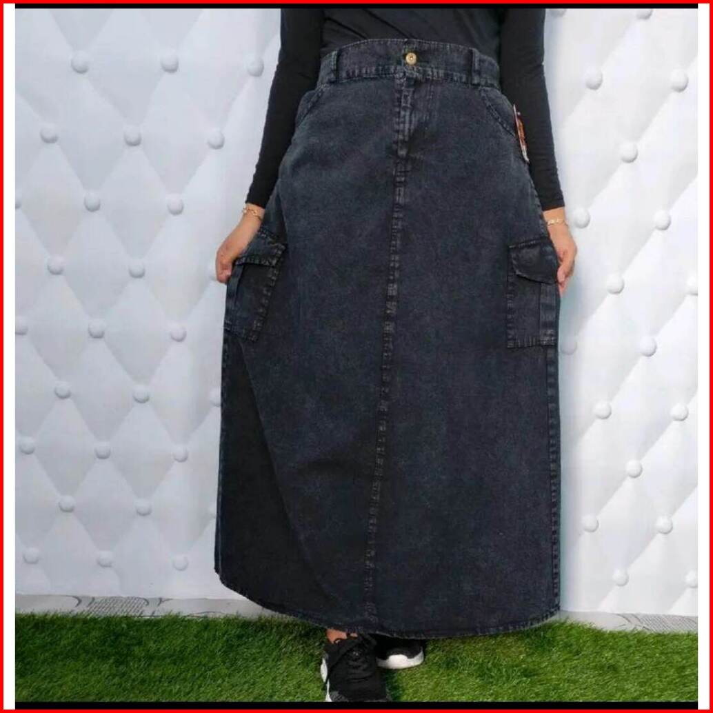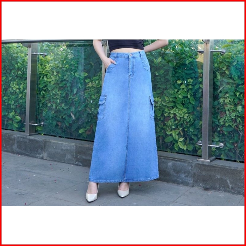 Rok Cargo Jeans Higwaist Panjang Wanita Premium-rok Cargo Higwaits Kekinian