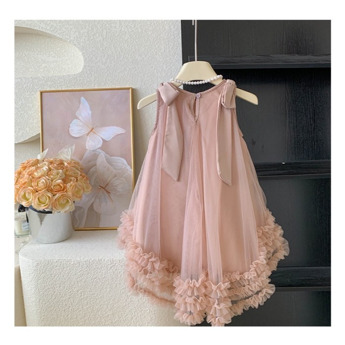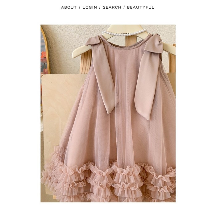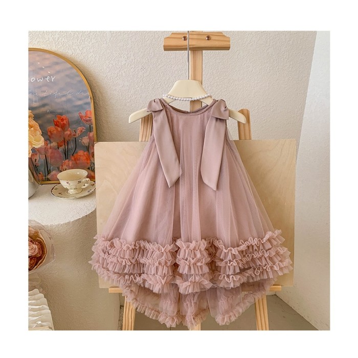 2-7TH DRESS PREMIUM LAUREL - GAUN ANAK PEREMPUAN TILE PESTA ELEGAN BALITA ULANG TAHUN BIRTHDAY - TINY BOW NUDE, 3-4TH