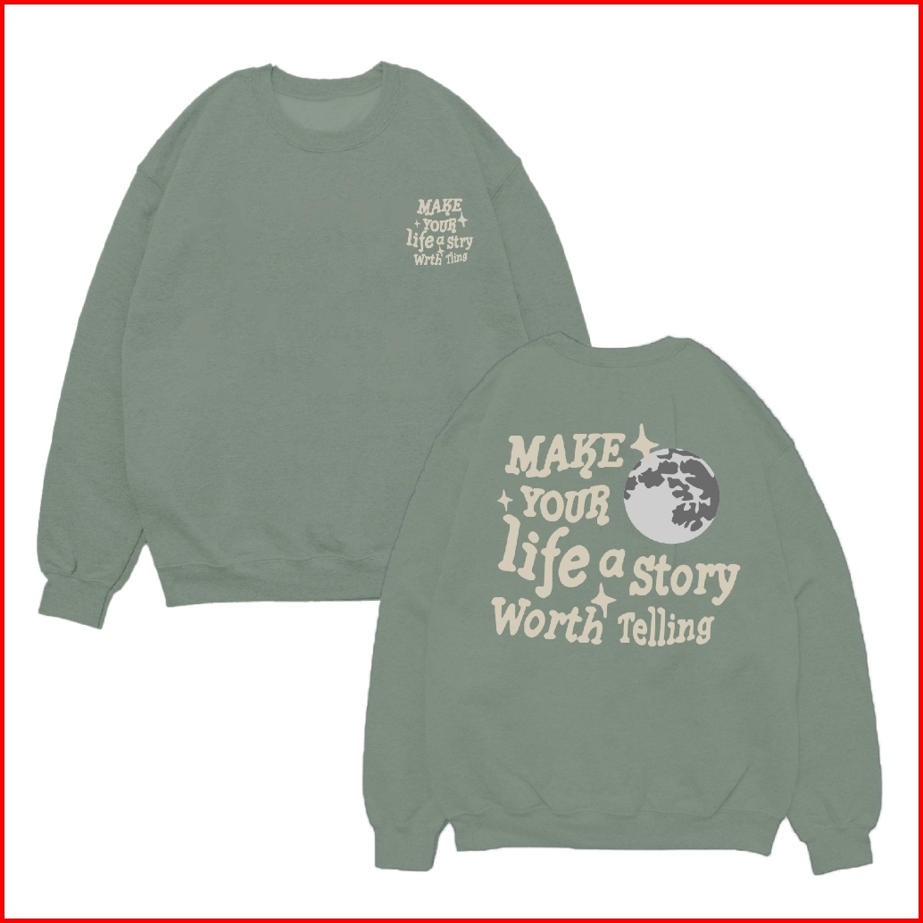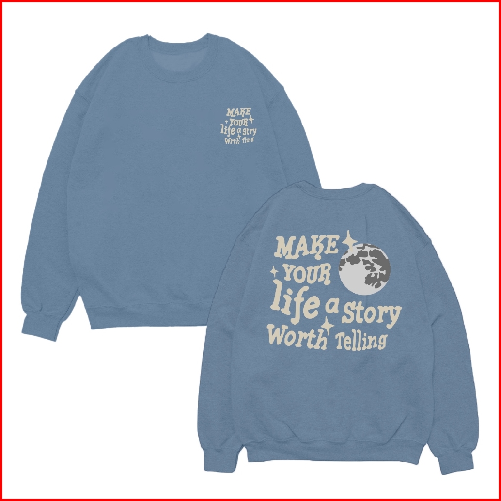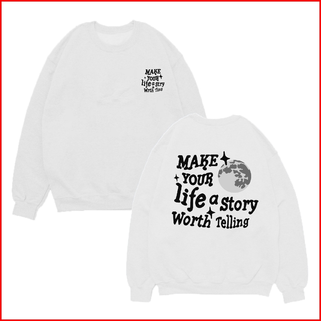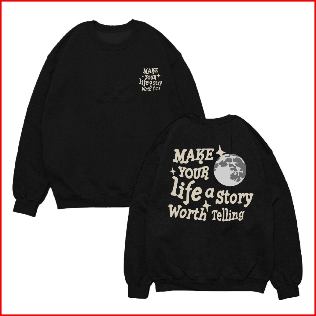 Fenjack Sweater Basic Life A Story Worth Telling Sablon Size M-xxl - Pria Wanita