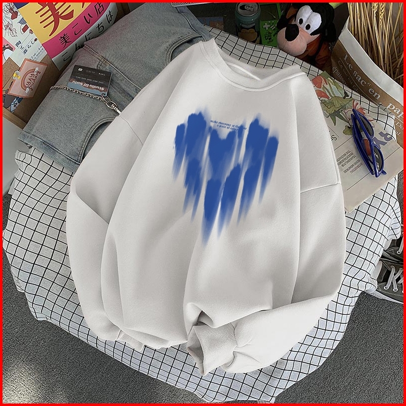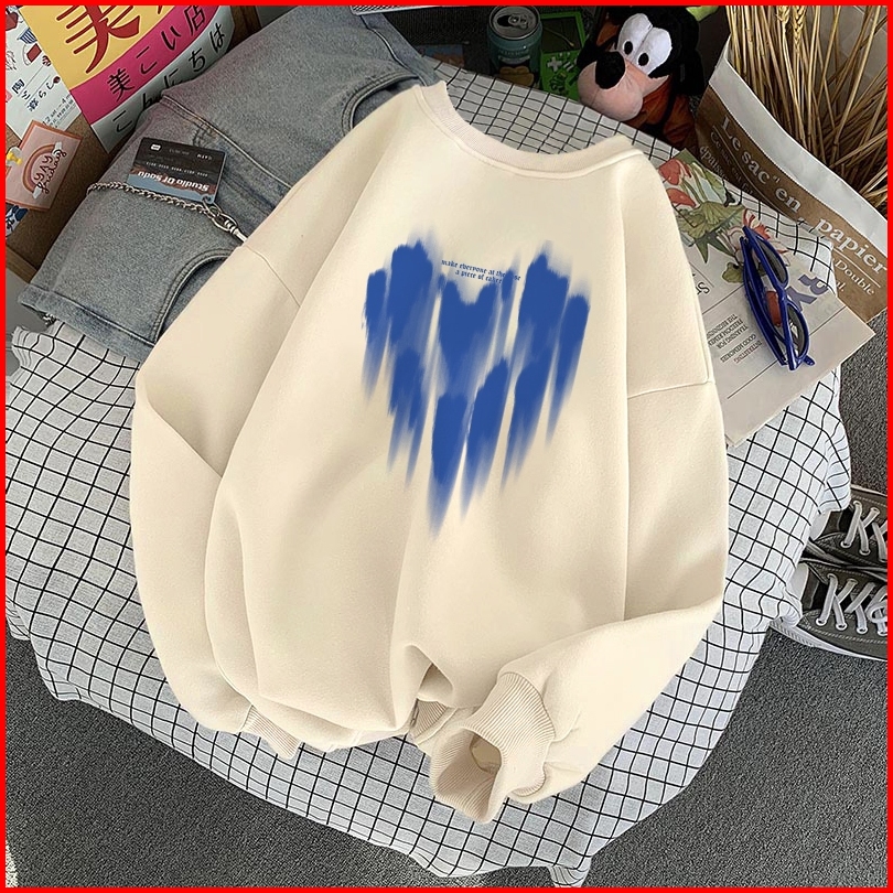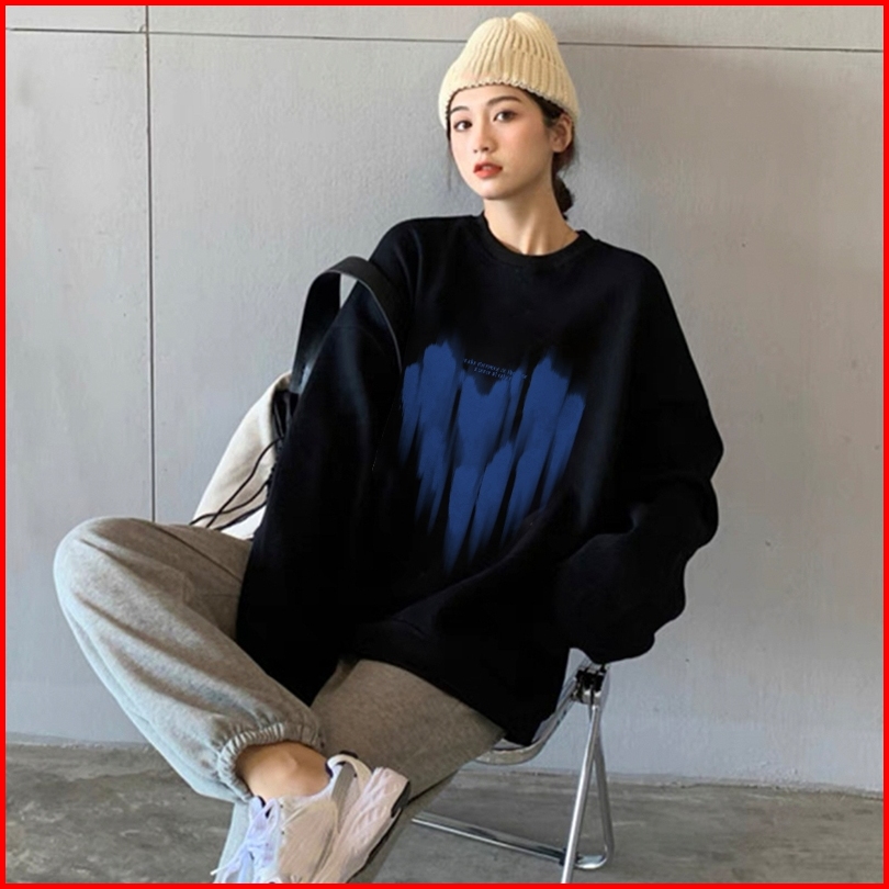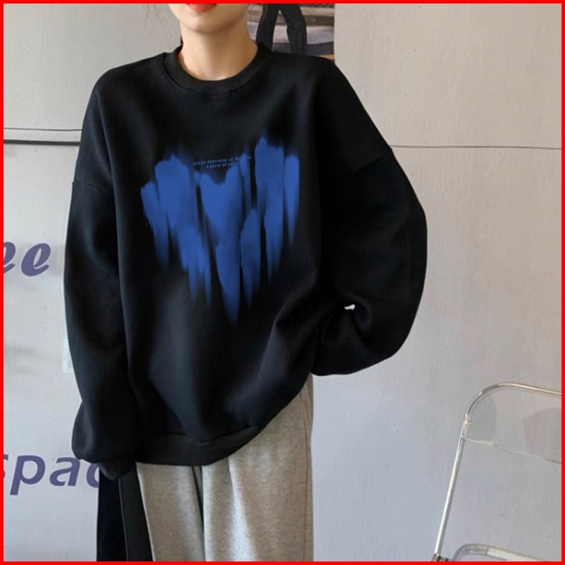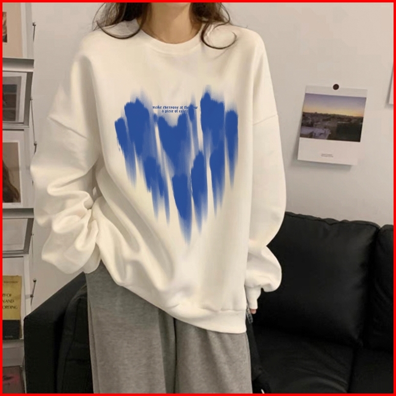 Forteid Cetakan Hati Yang Besar Trendi Yang Lucu Lengan Panjang Oversized Street Style Korean Style Switer Wanita Oversi
