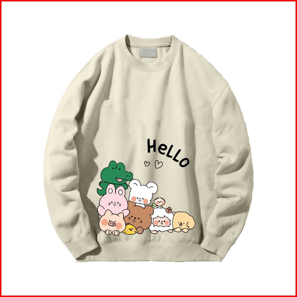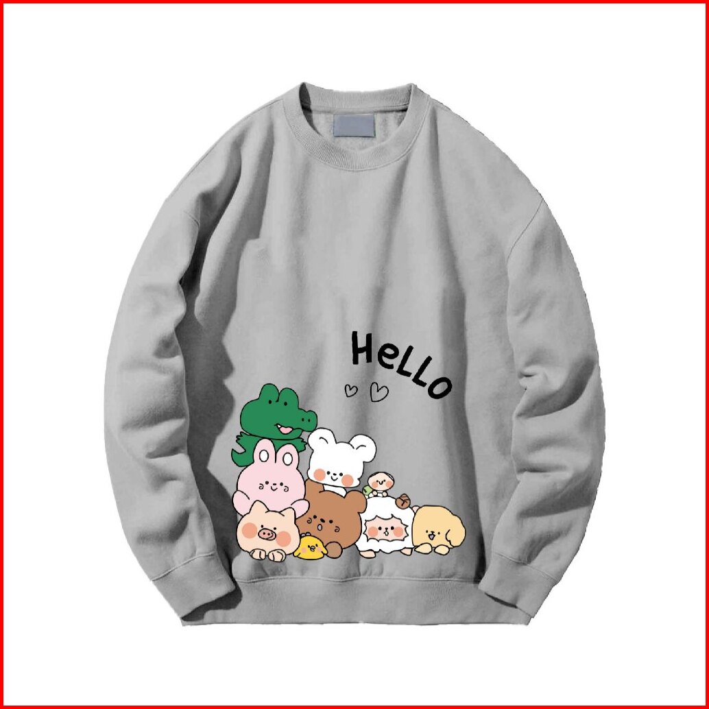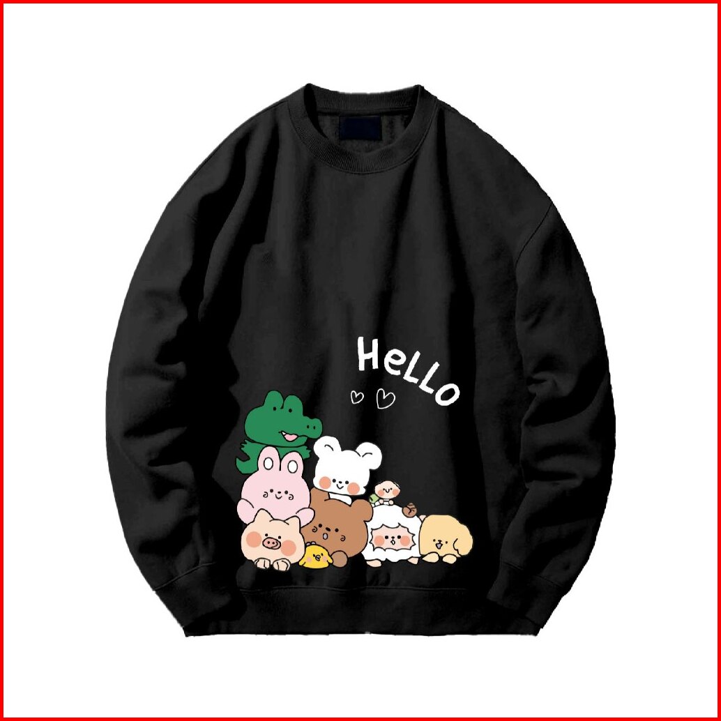 Crewneck Sweater Jyb Oversize Hello Line Sablon Size M-xxl Unisex Pria Wanita