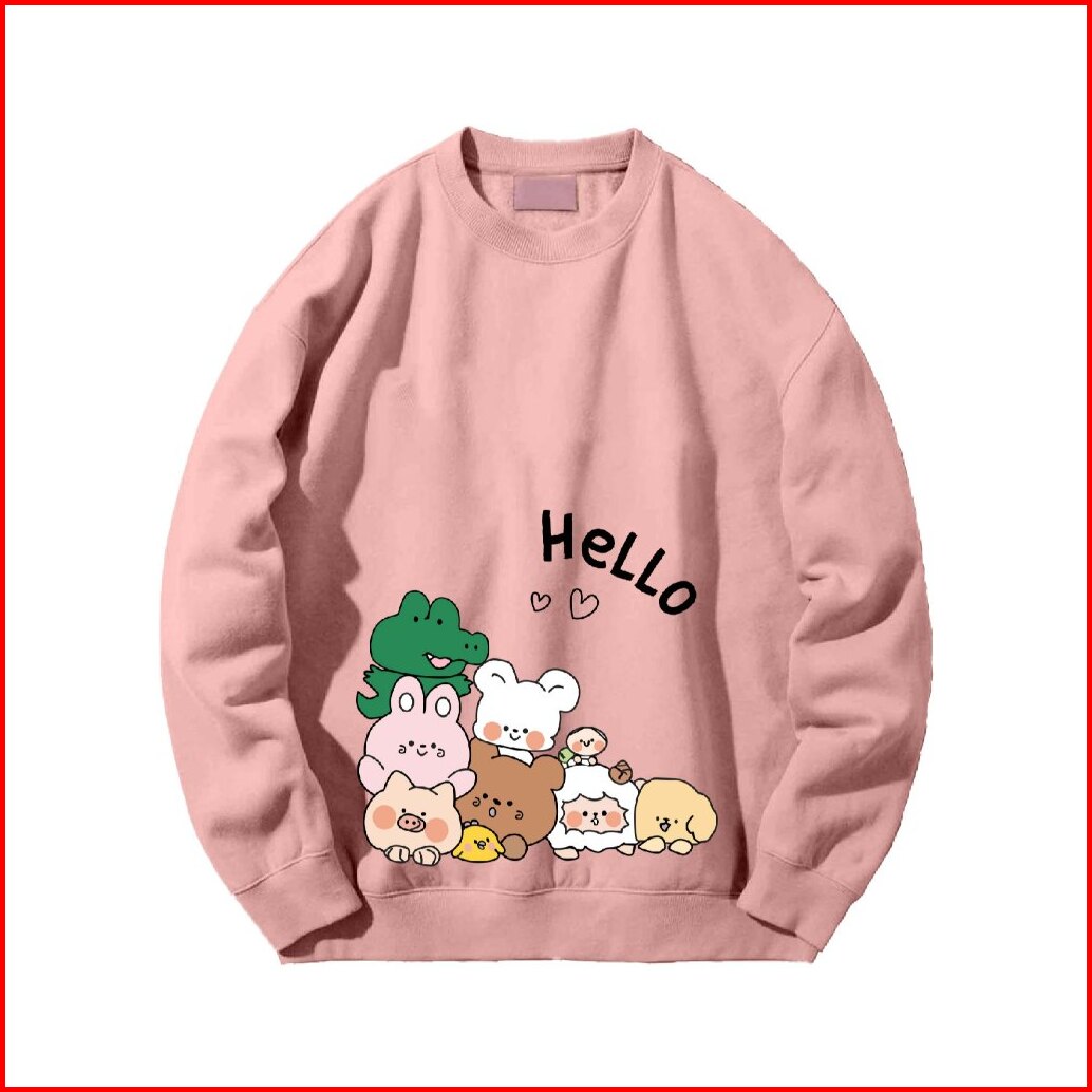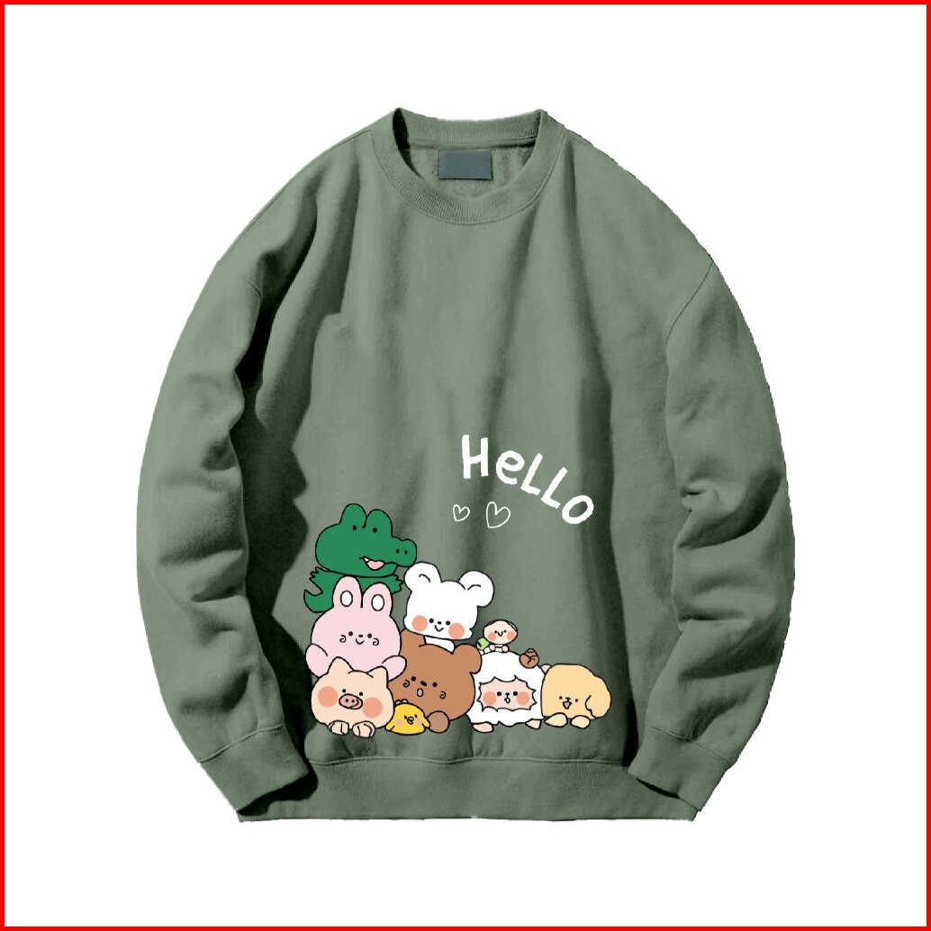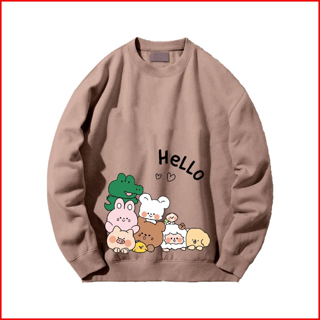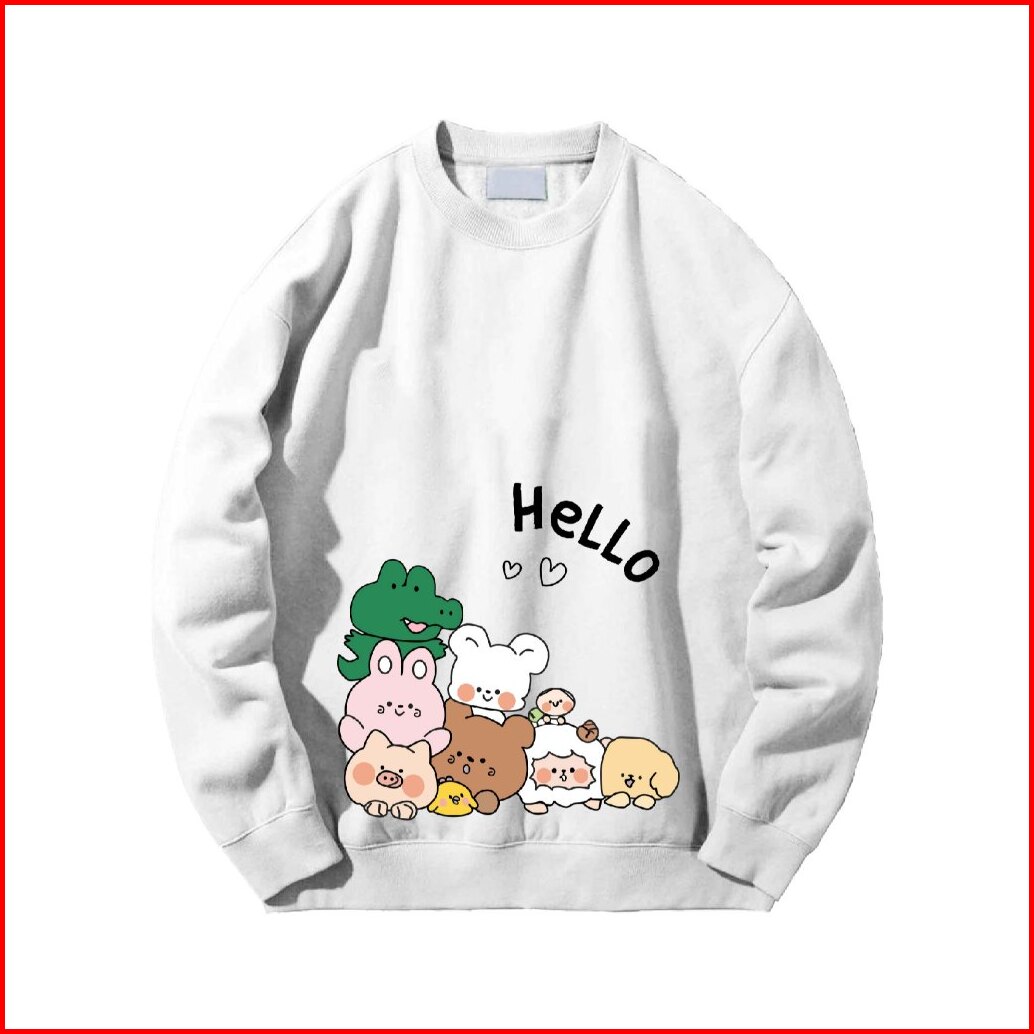 Crewneck Sweater Jyb Oversize Hello Line Sablon Size M-xxl Unisex Pria Wanita