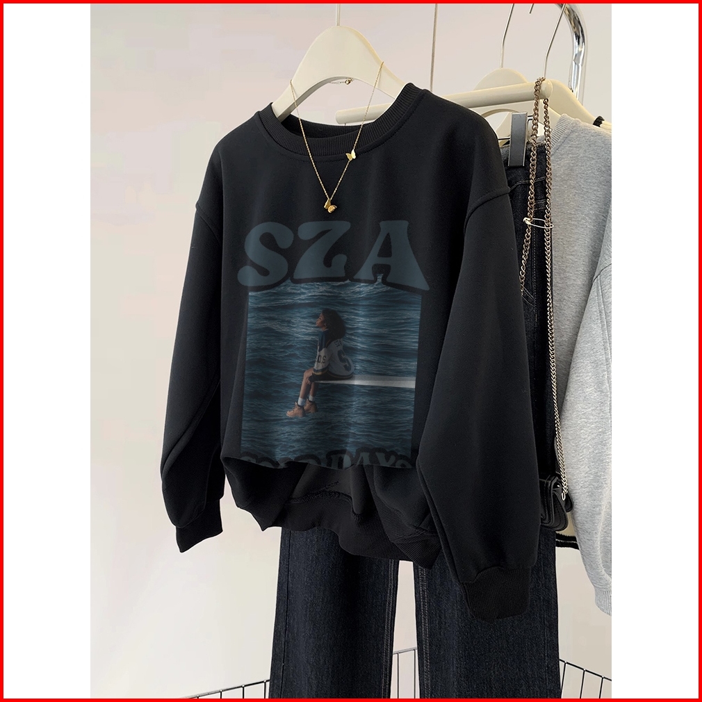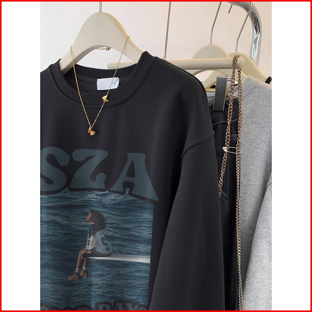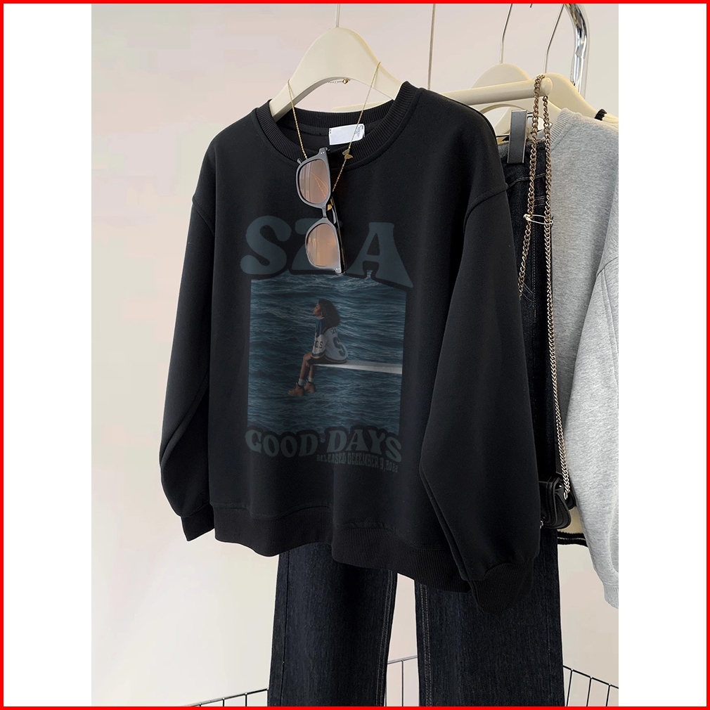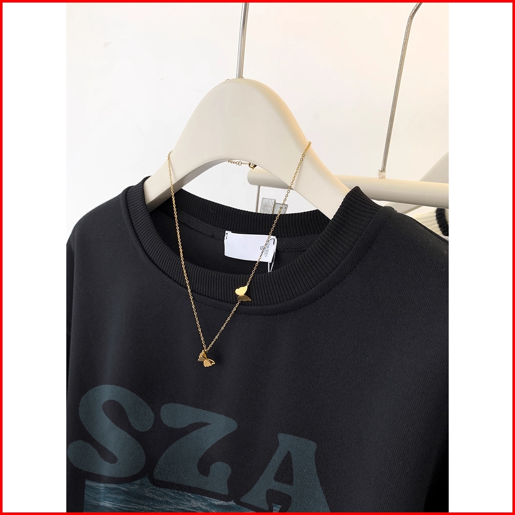 A0946 Forteid Sweater Oversize Gulf Print Sweater Hitam Panjang Muda Crewneck Basic Korean Style Sweater Oversize Crewne