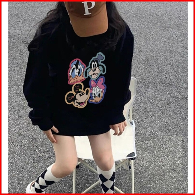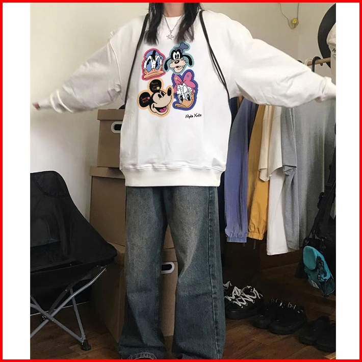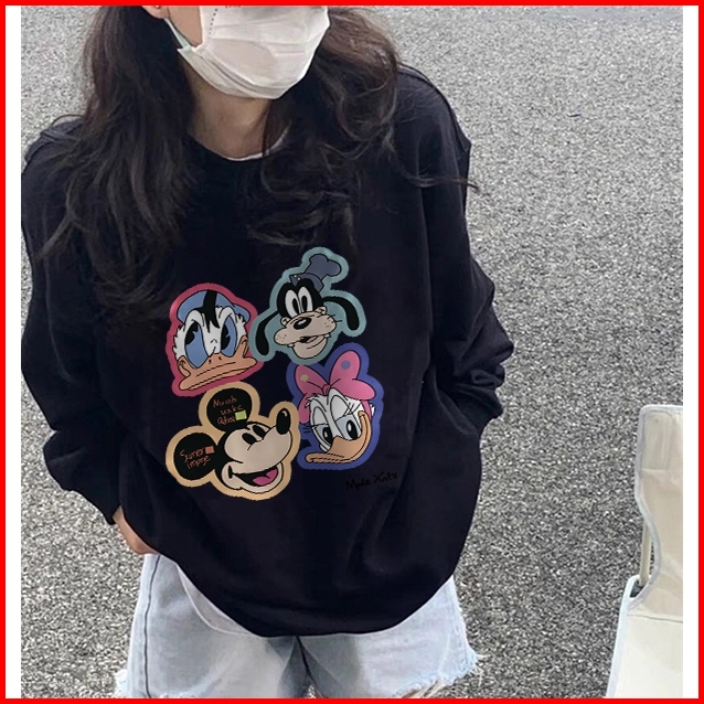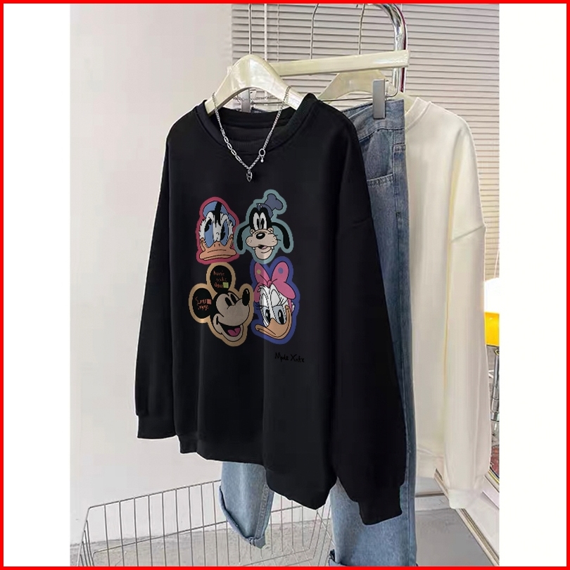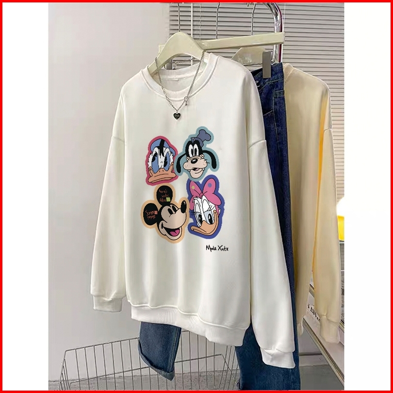 Forteid Sweater Lengan Panjang Oversized Street Style Korean Style Switer Wanita Oversize Cetakan Mickey Mouse Korean St