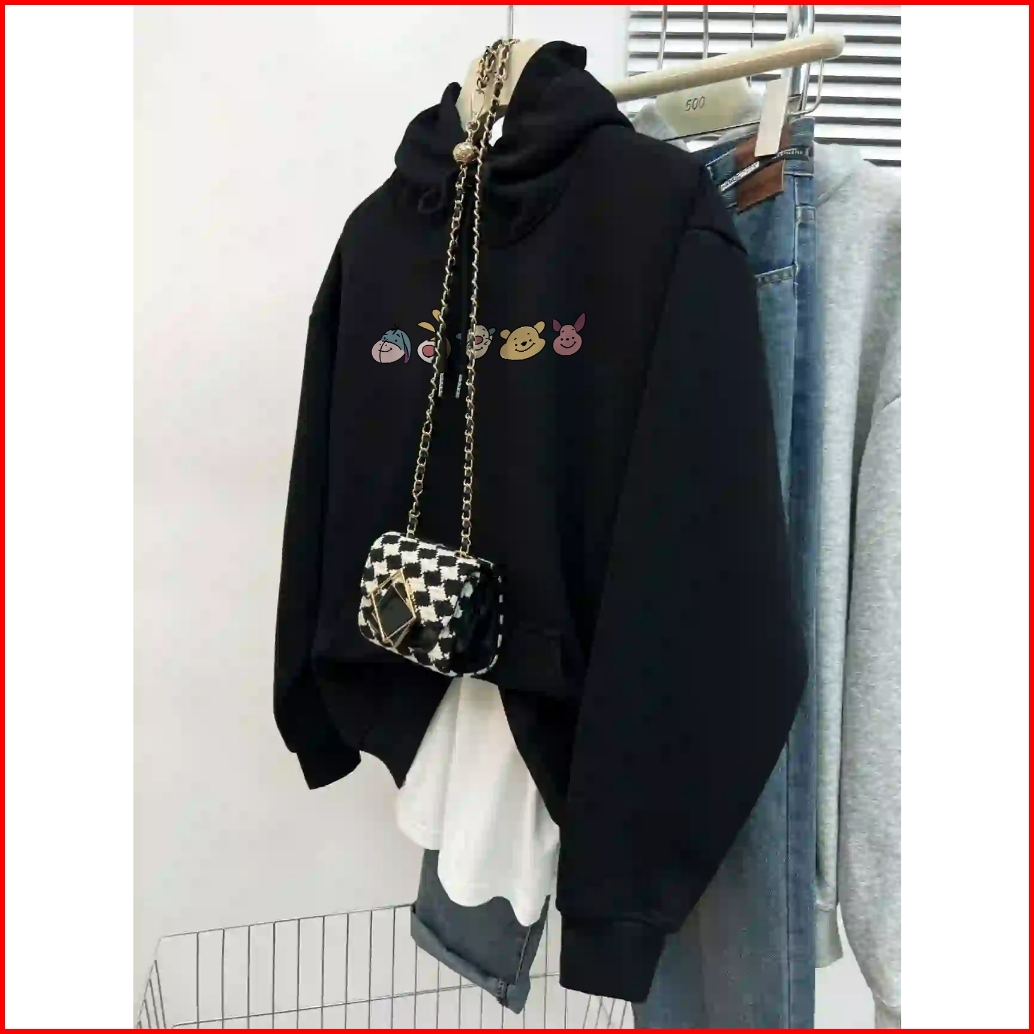 Forteid A1094 Sweater Tigger Sweater Panjang Hitam Muda Ala Korea Sweater Oversized Wanita Crew Neck Sweater Crew Neck A