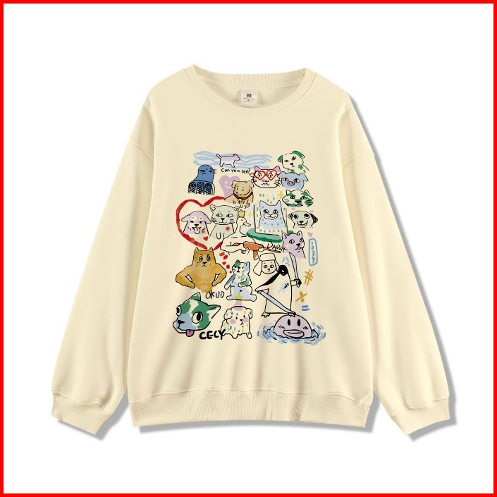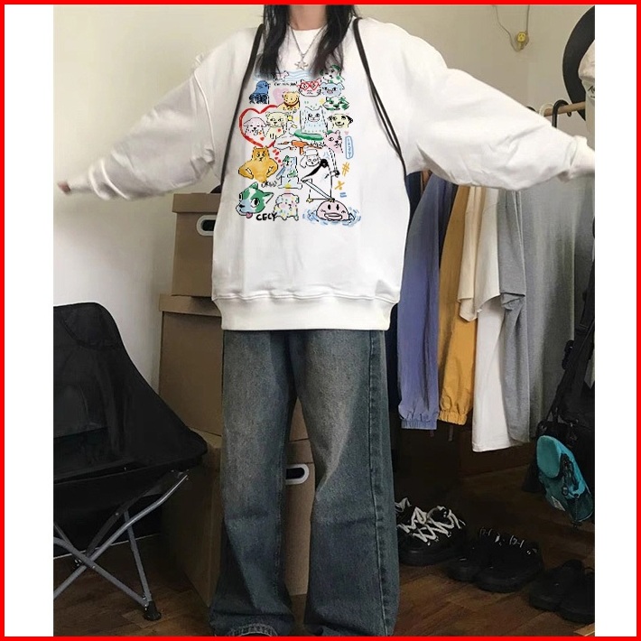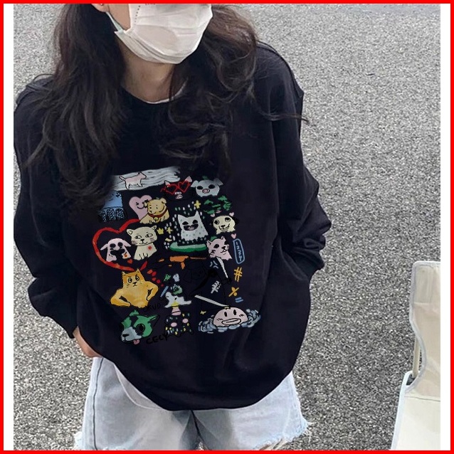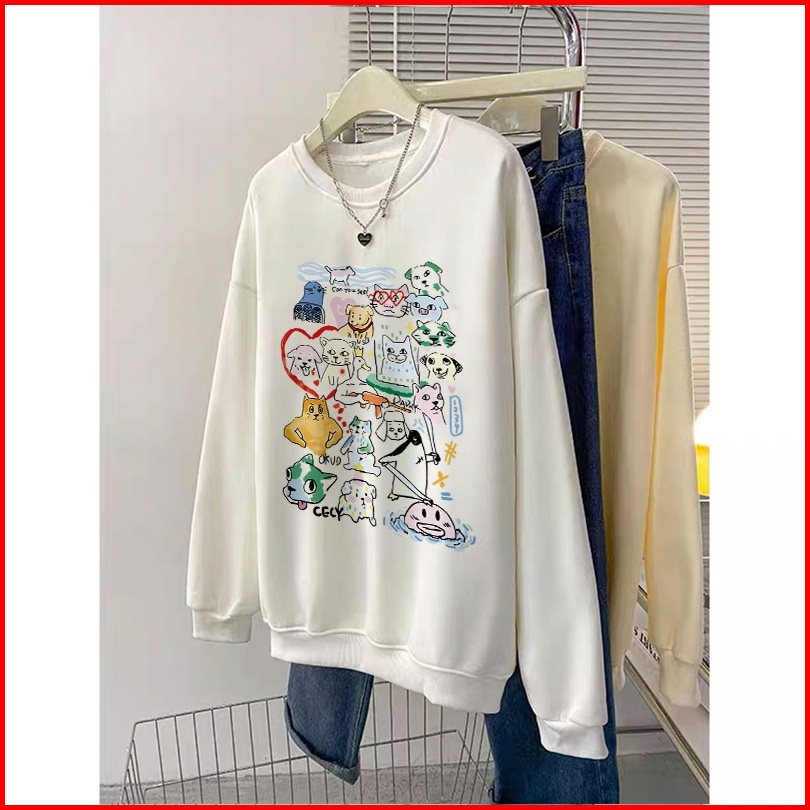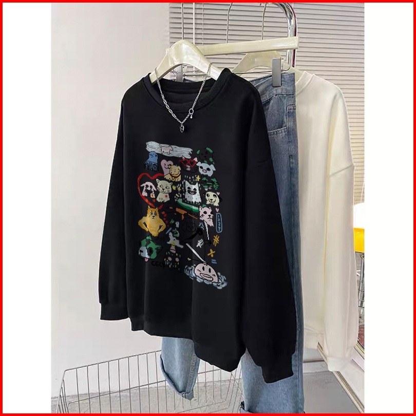 Forteid Sweater Lengan Panjang Oversized Street Style Korean Style Switer Wanita Oversize Cetakan Kartun Yang Lucu Korea