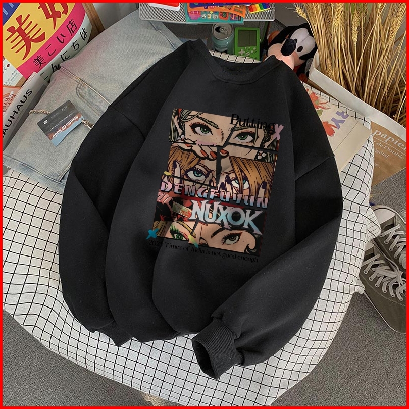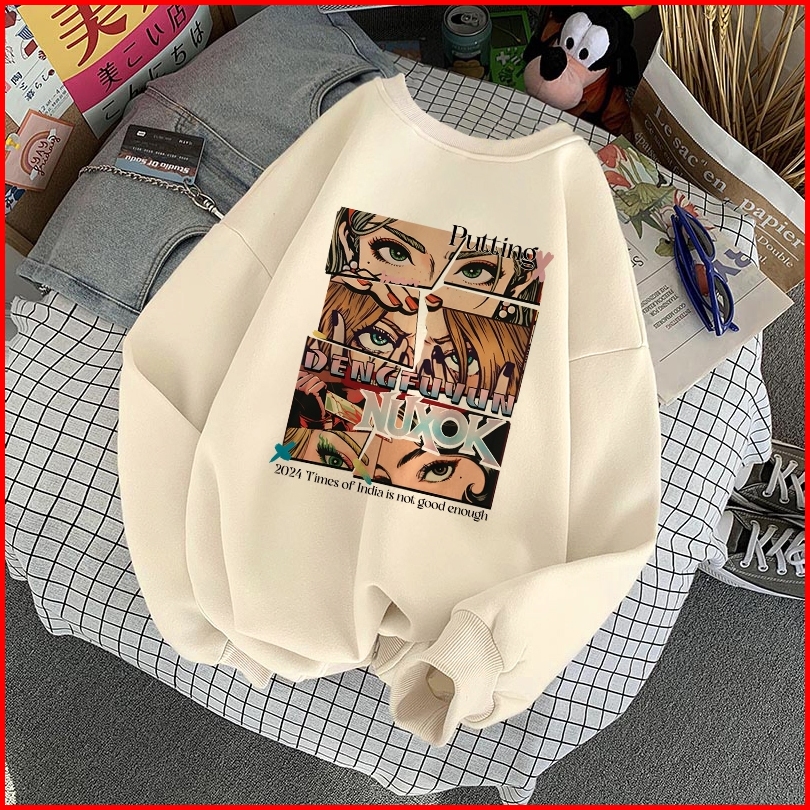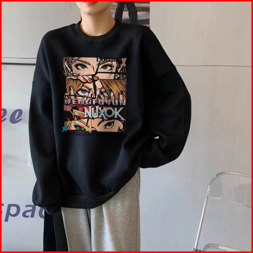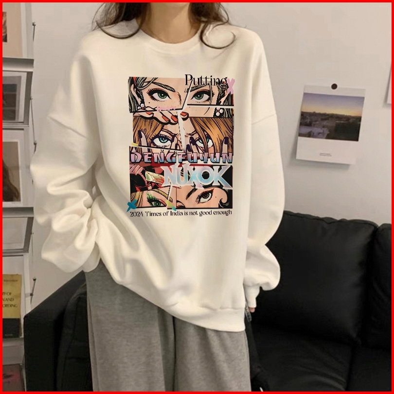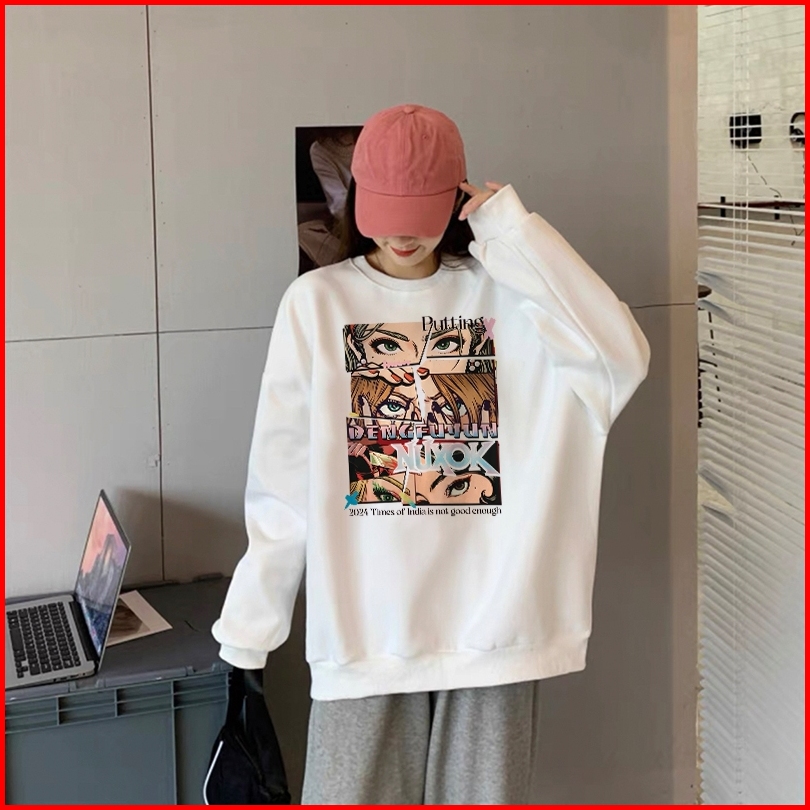 Forteid Sweater Lengan Panjang Oversized Street Style Korean Style Switer Wanita Oversize Kaos Pola Kecantikan Yang Inda