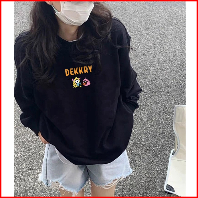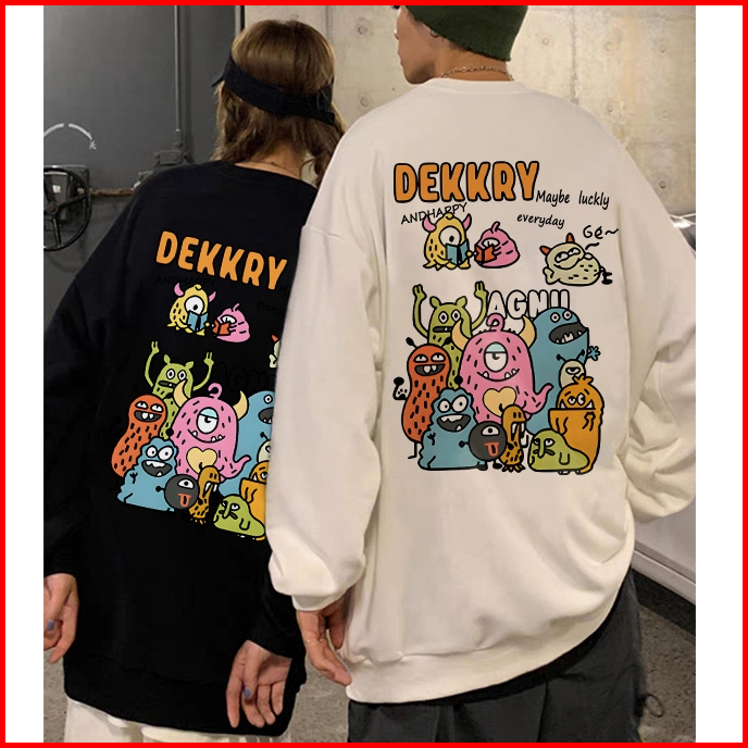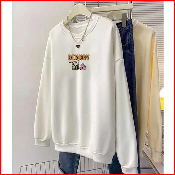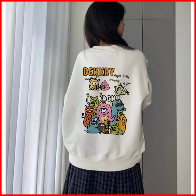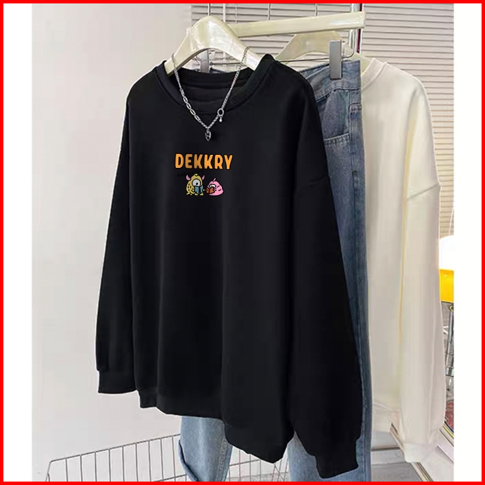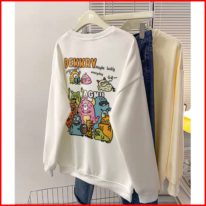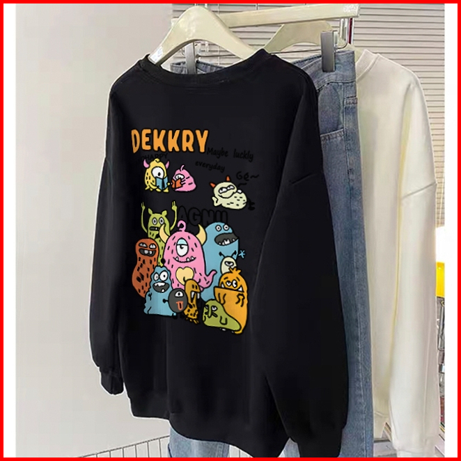 Forteid A1013 Sweater Little Monster Sweater Hitam Panjang Muda Basic Round Neck Sweater Oversized Round Neck Ala Korea
