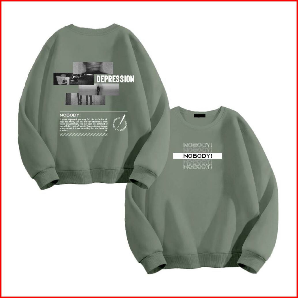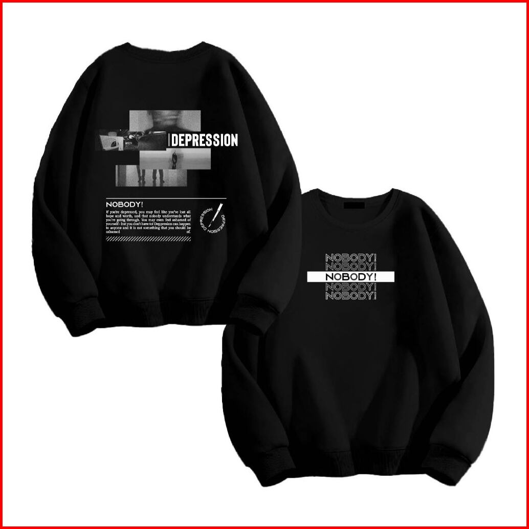 Kotasweater Basic Sweater Depression Sablon Depan Belakang Size M-xxl Pria Wanita