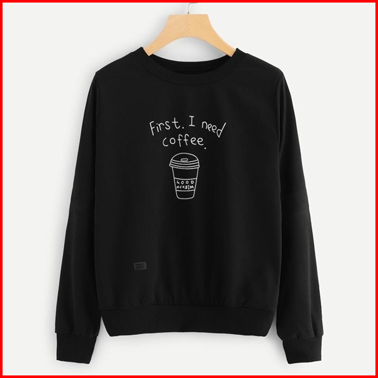 Harvional Basic Sweater Polos First I Need Coffee Size S-xxl