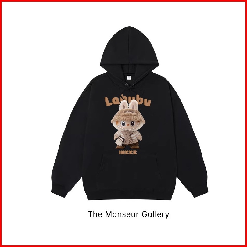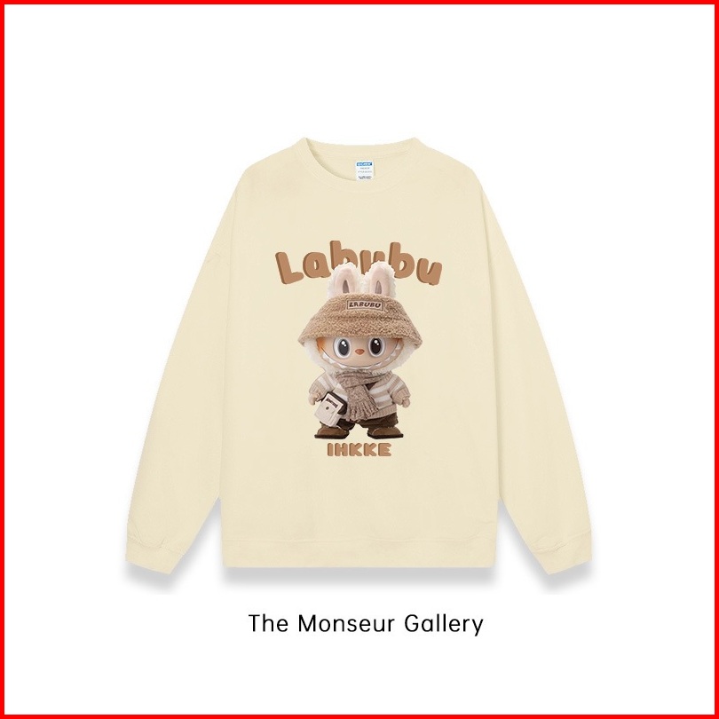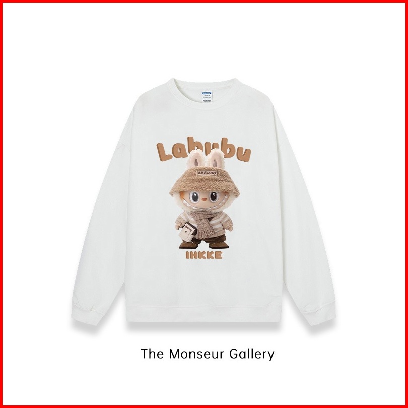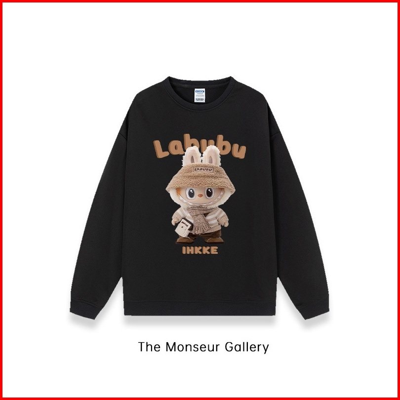 The Monseur Gallery Switer Wanita Oversize Labubu Ihkke Style Sweater Oversize Crewneck Sweater Hitam