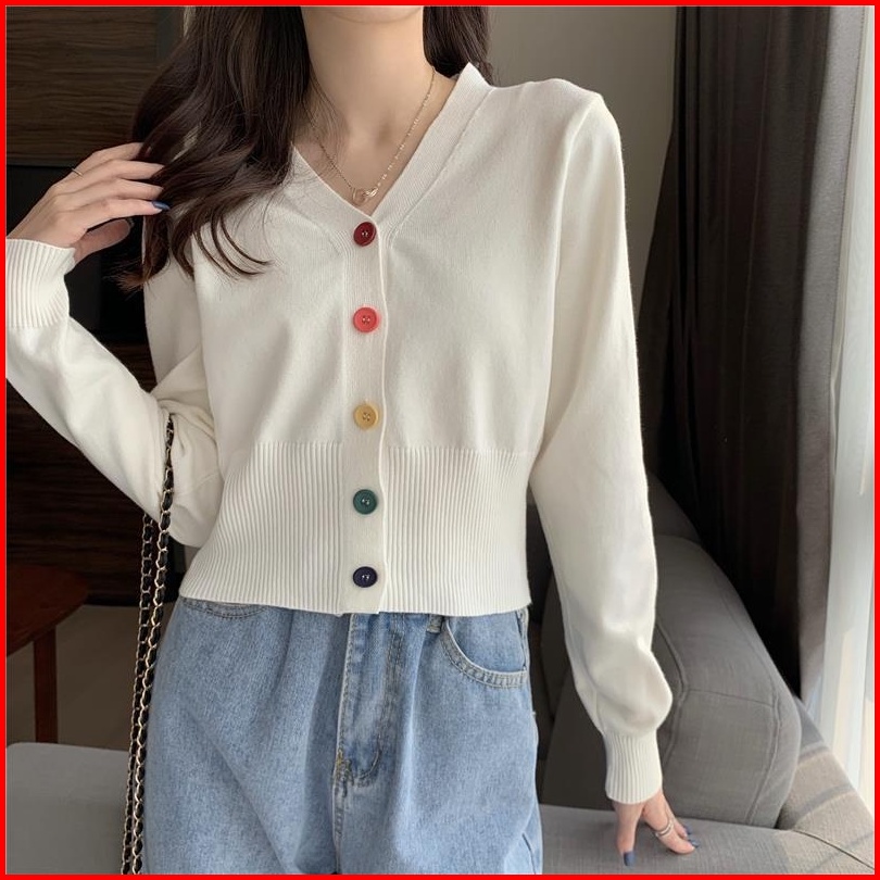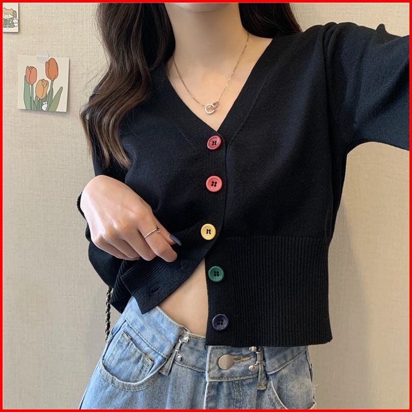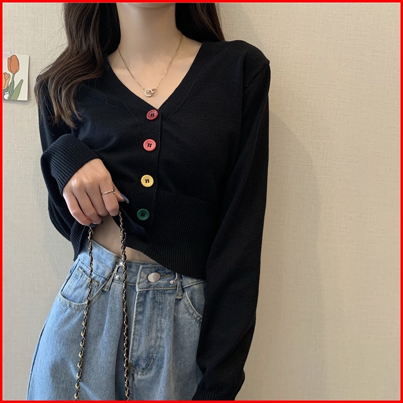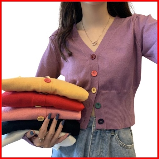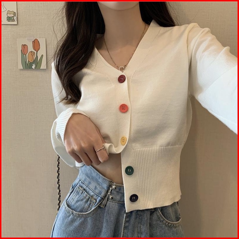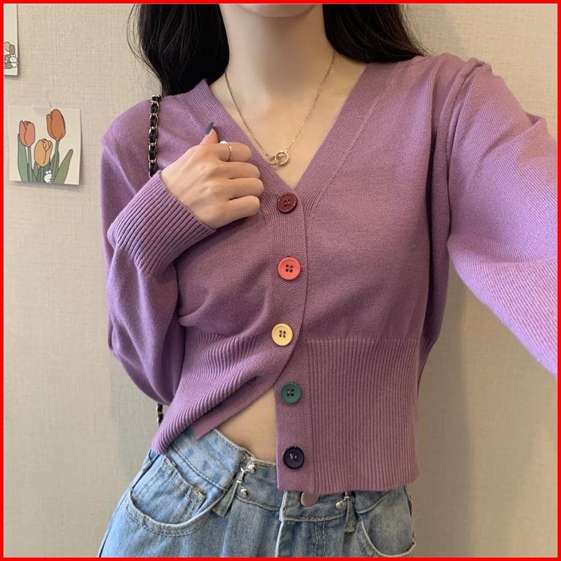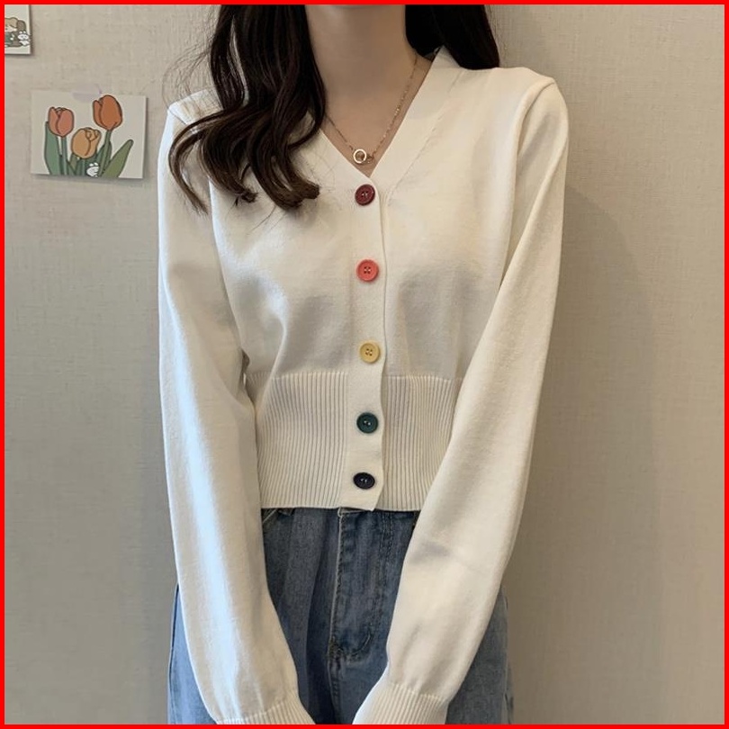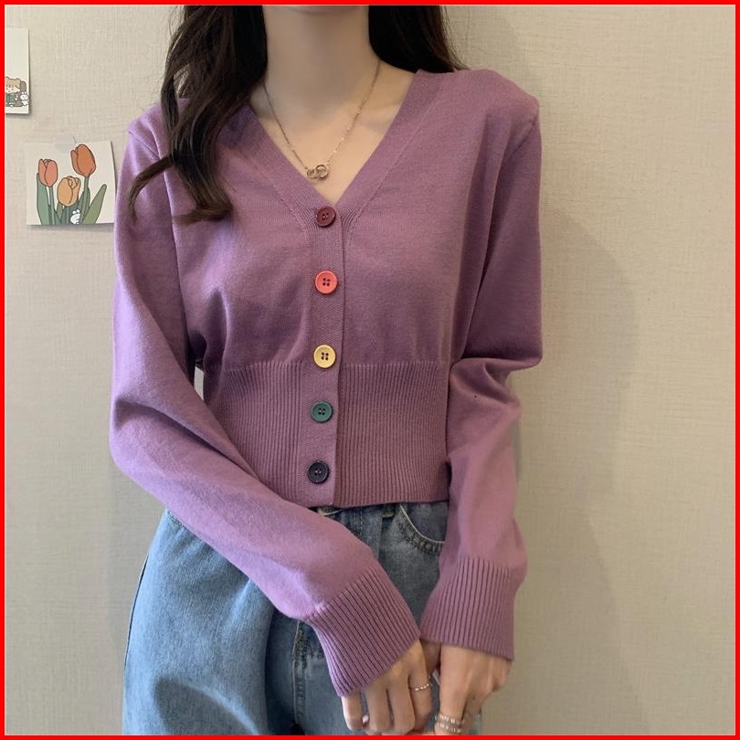 Yuruma Crop Top Sweater Rajutan Lengan Panjang Gaya Korea Mantel Kardigan Sweater Bottoming Bendek