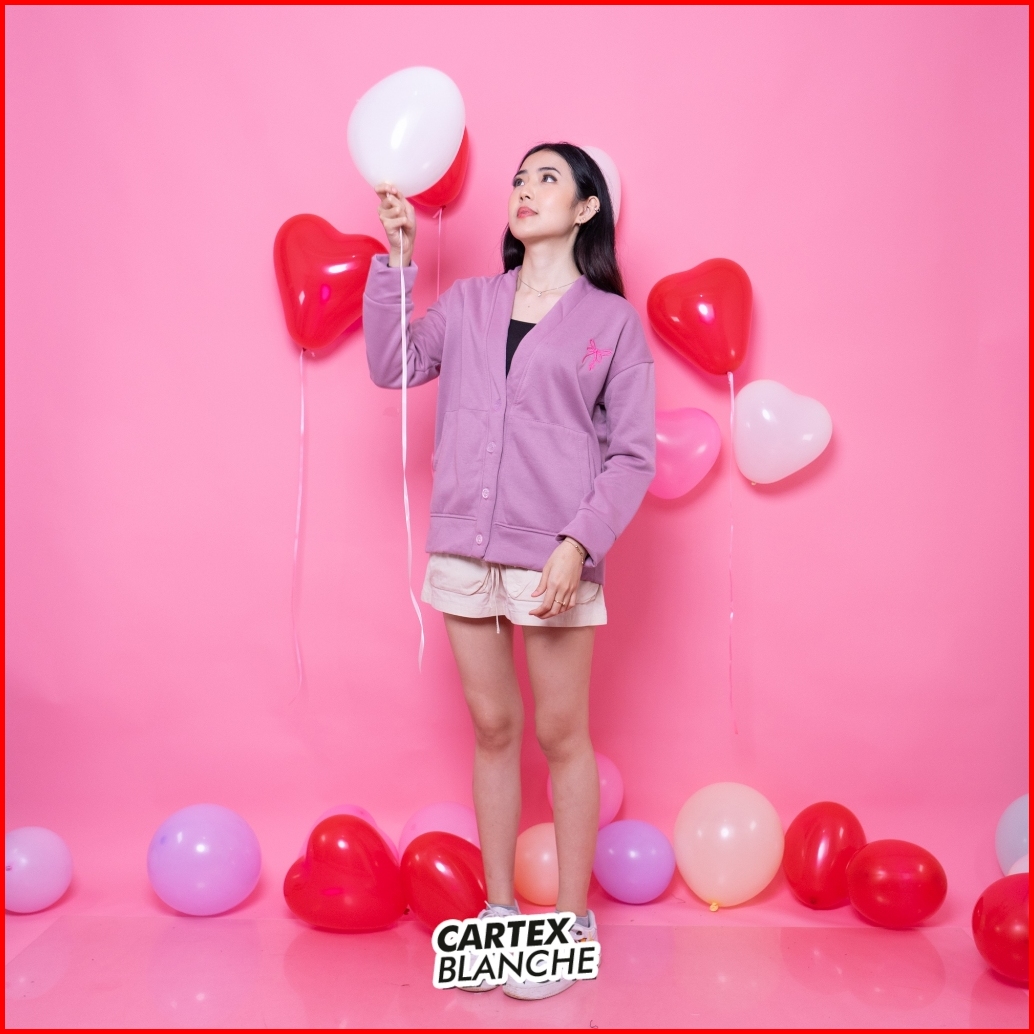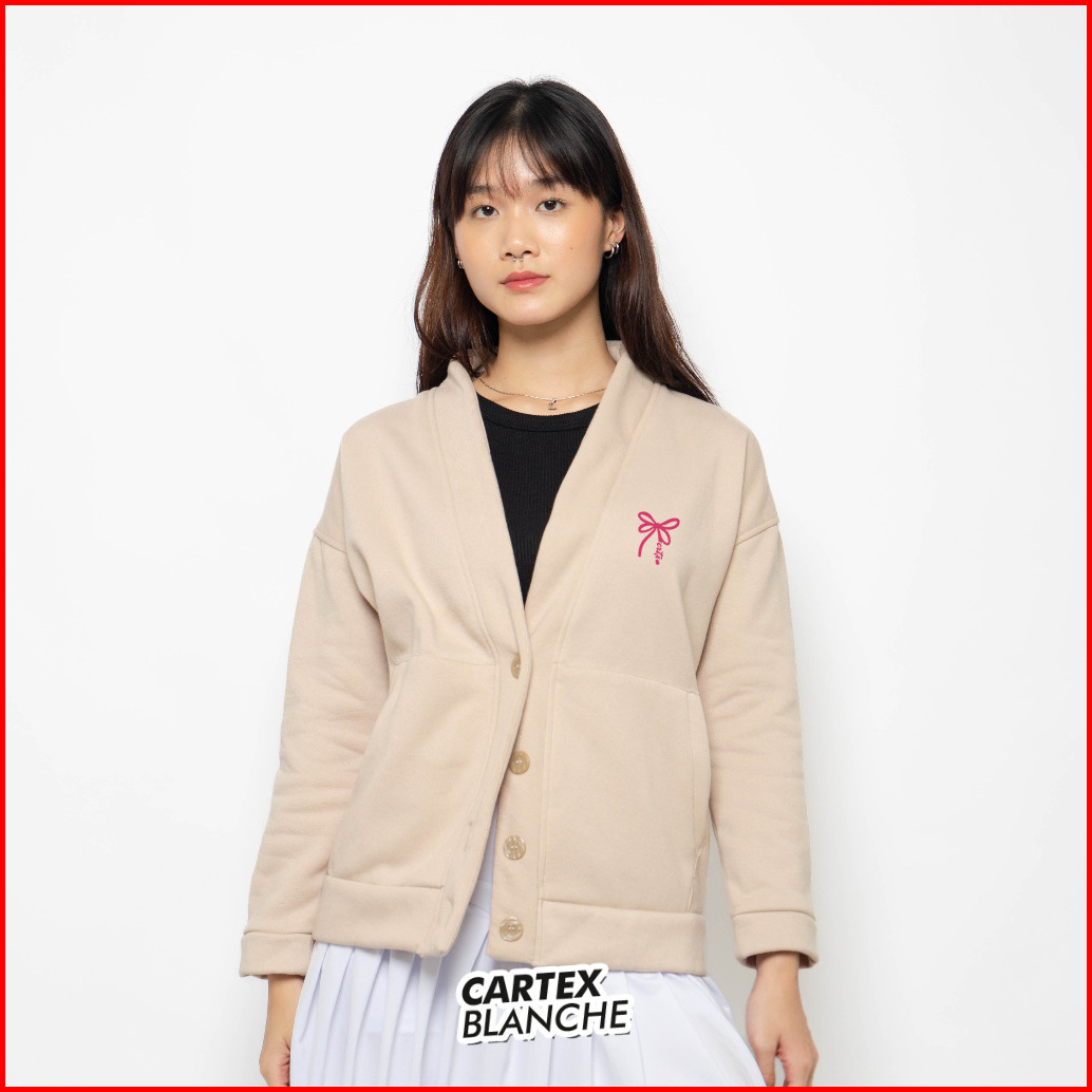 Cartexblanche Coquette Ribbon Pita Sweater Cardigan Kancing Bordir Outer Wanita