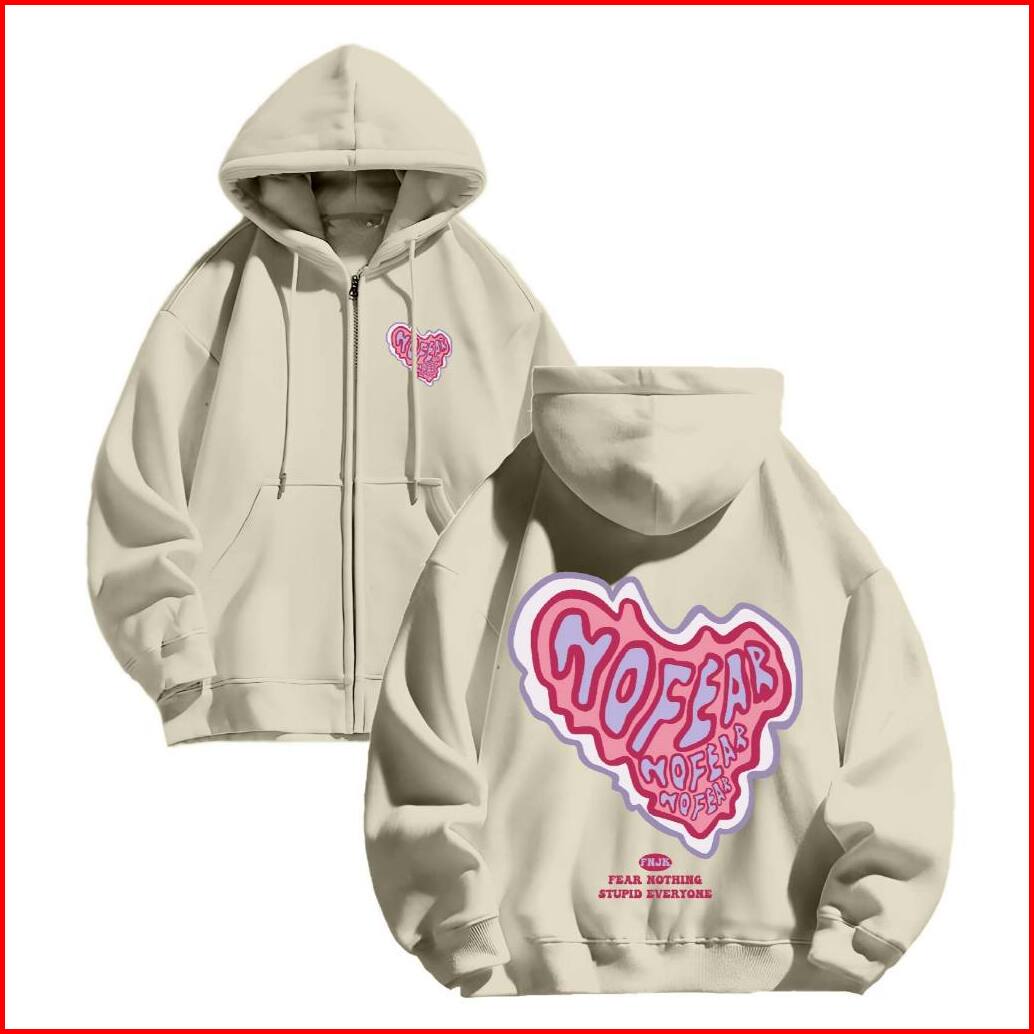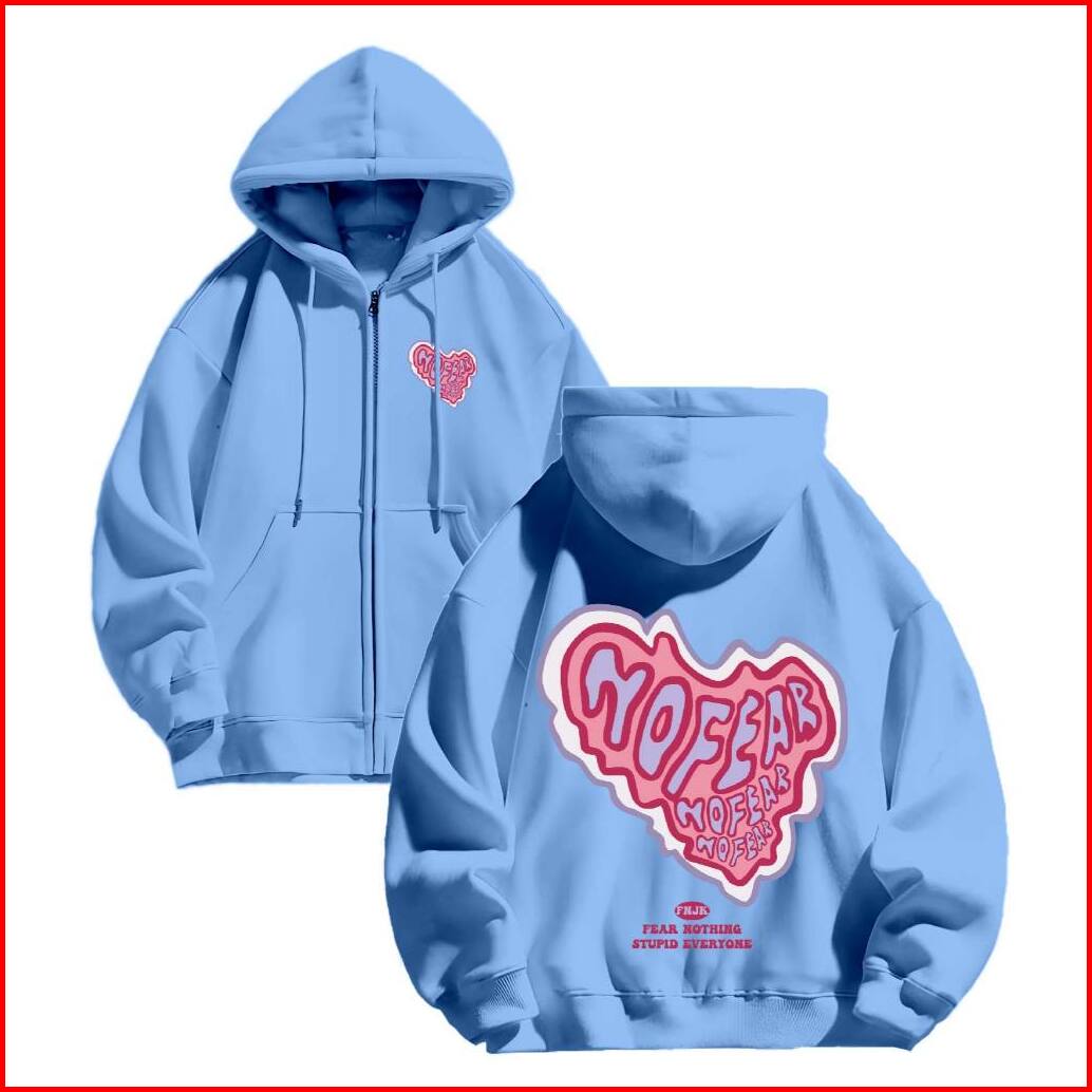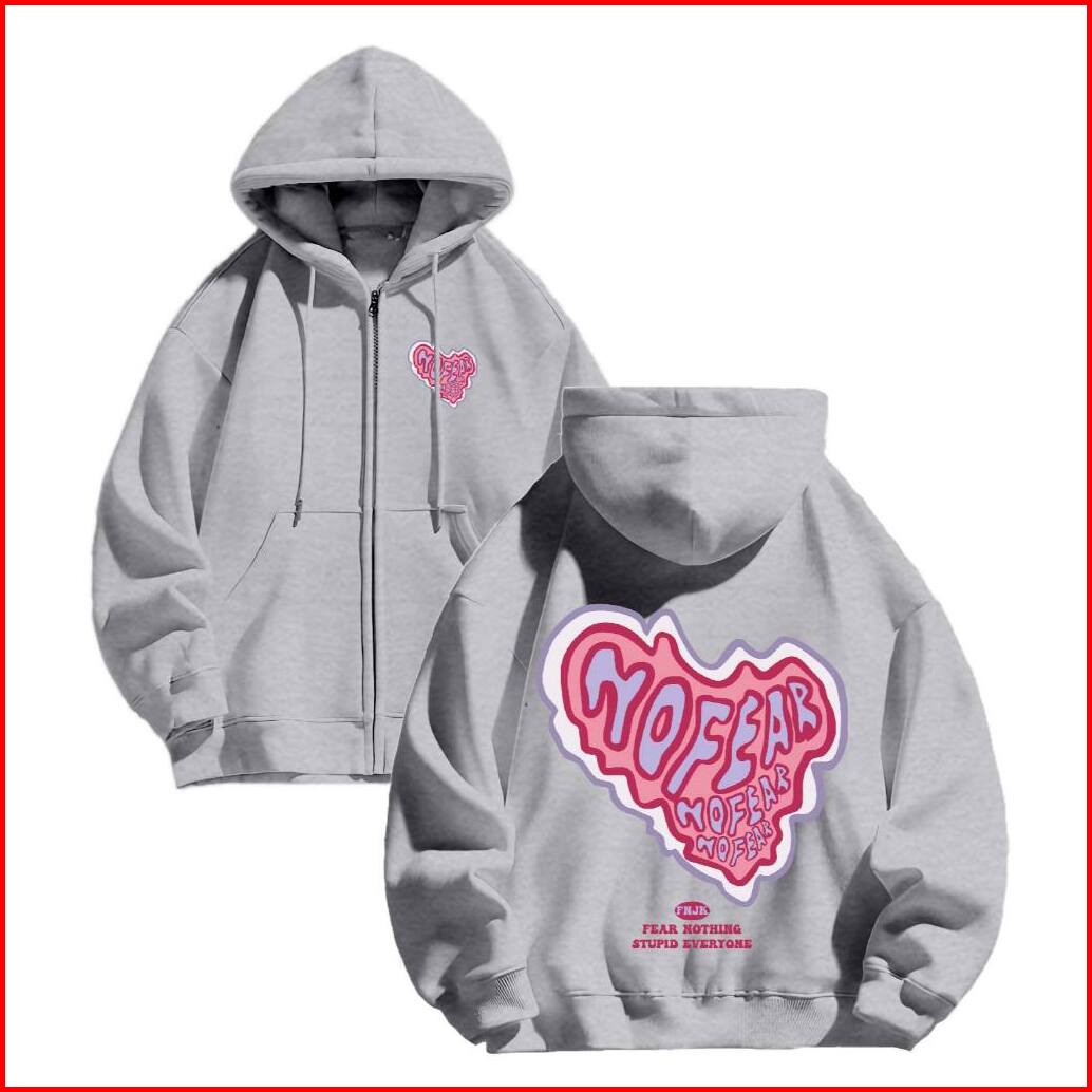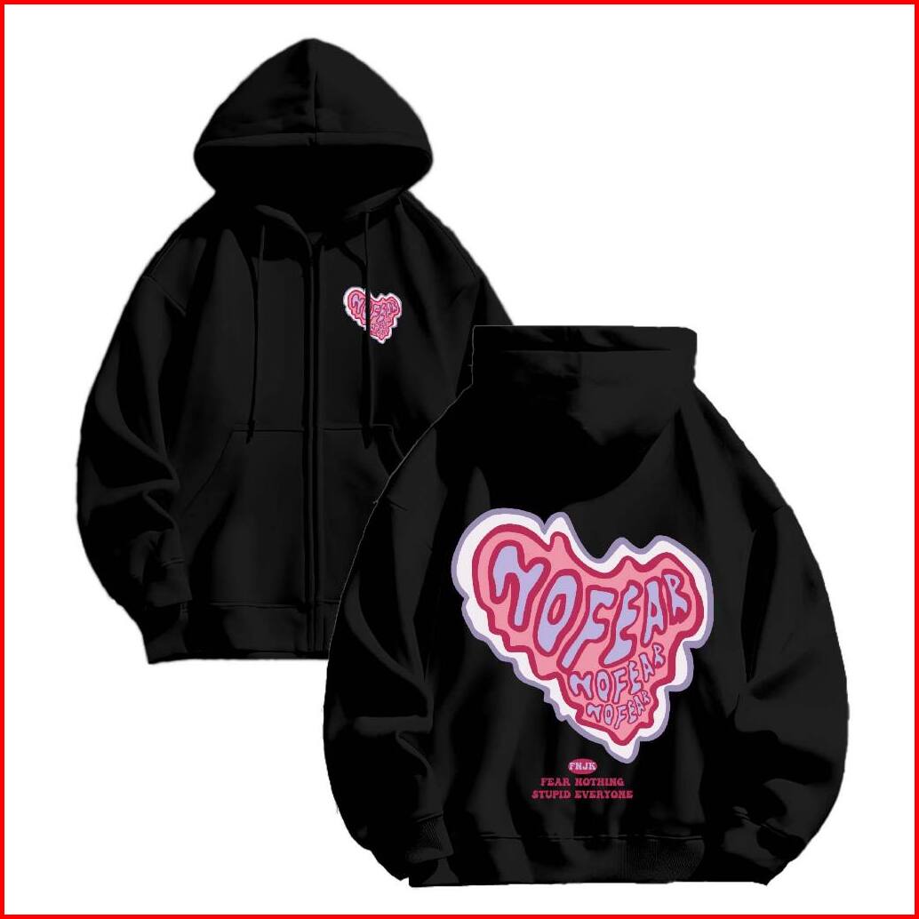 Bunz Jaket Hoodie Zipper Sablon Fear Nothing Size M-xxl Unisex Pria Wanita