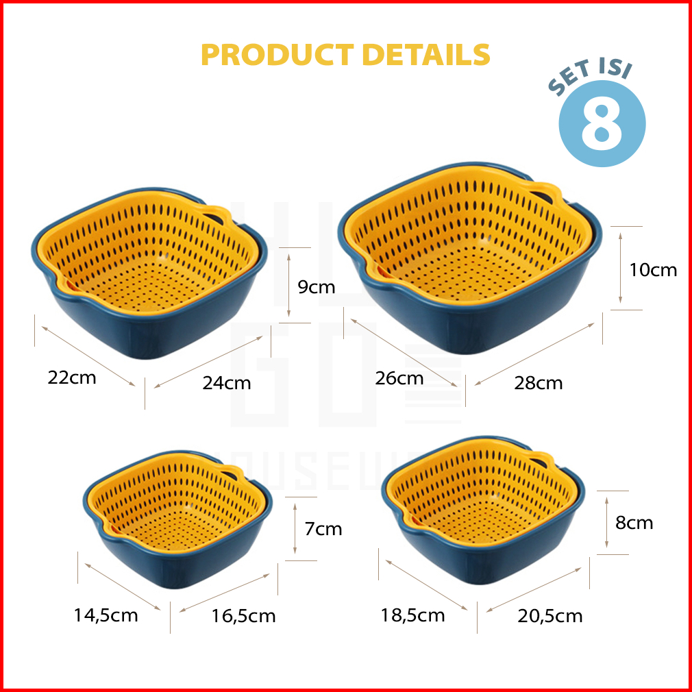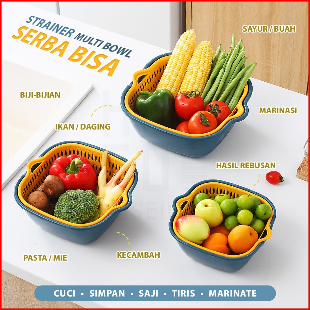 Hugo Keranjang Pengering Sayuran Buah Wadah Peniris Cuci Sayur Buah Saringan Serbaguna 8 In 1