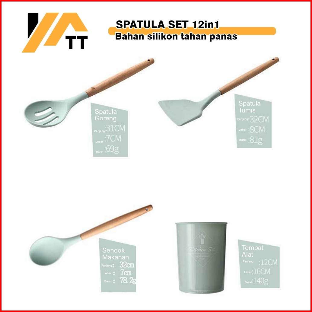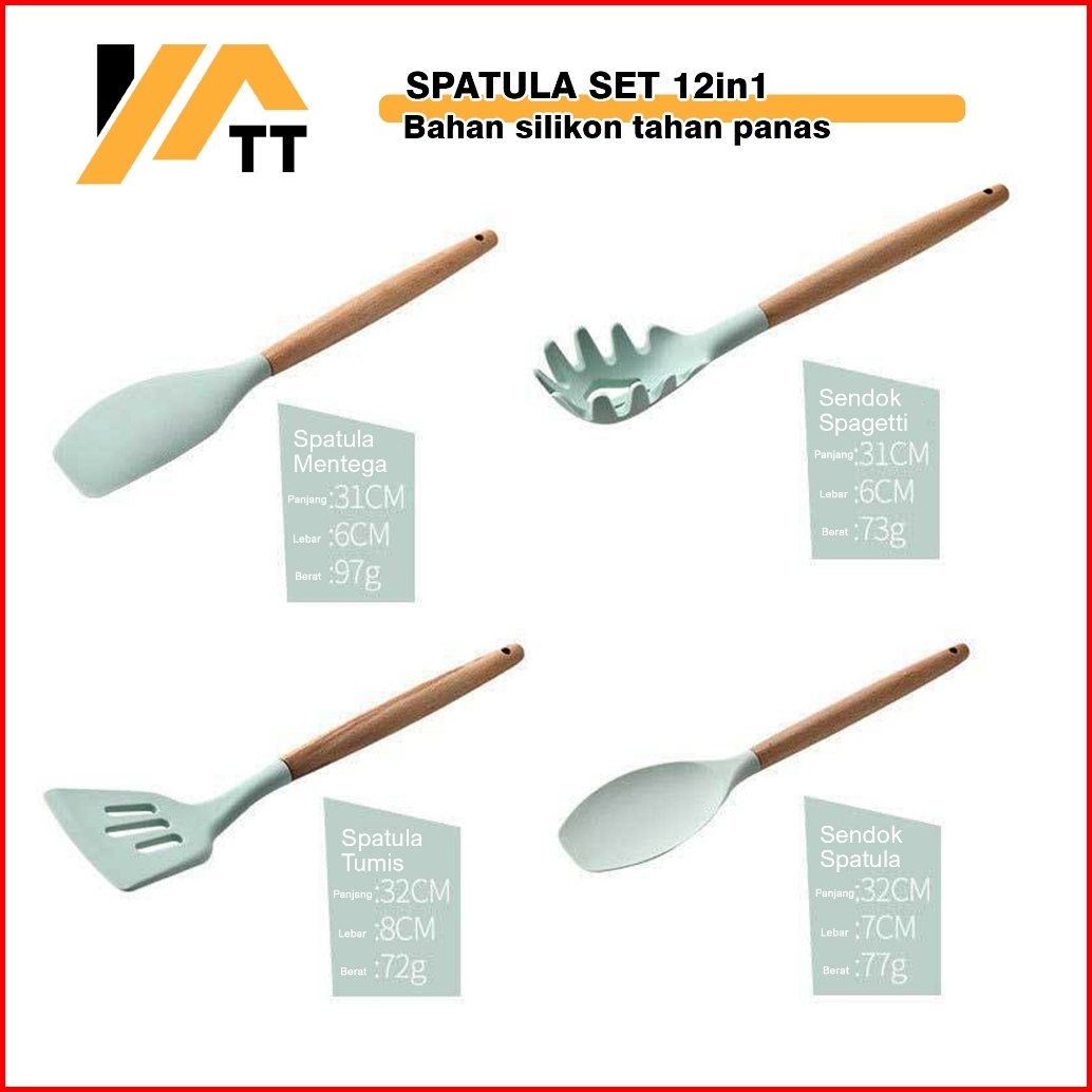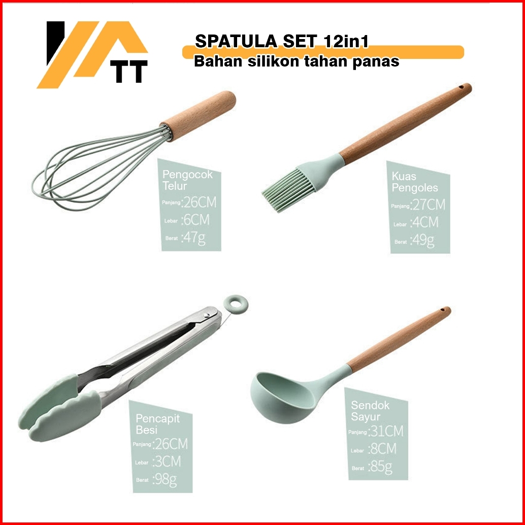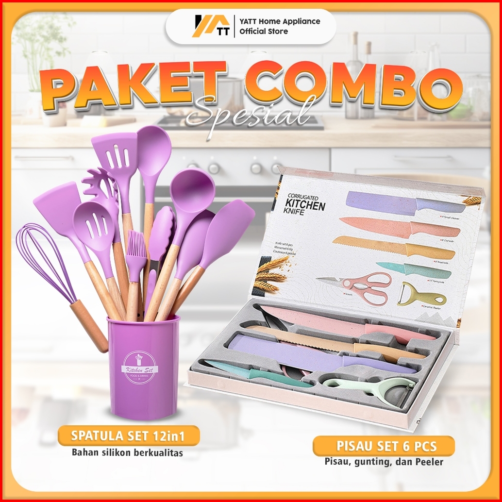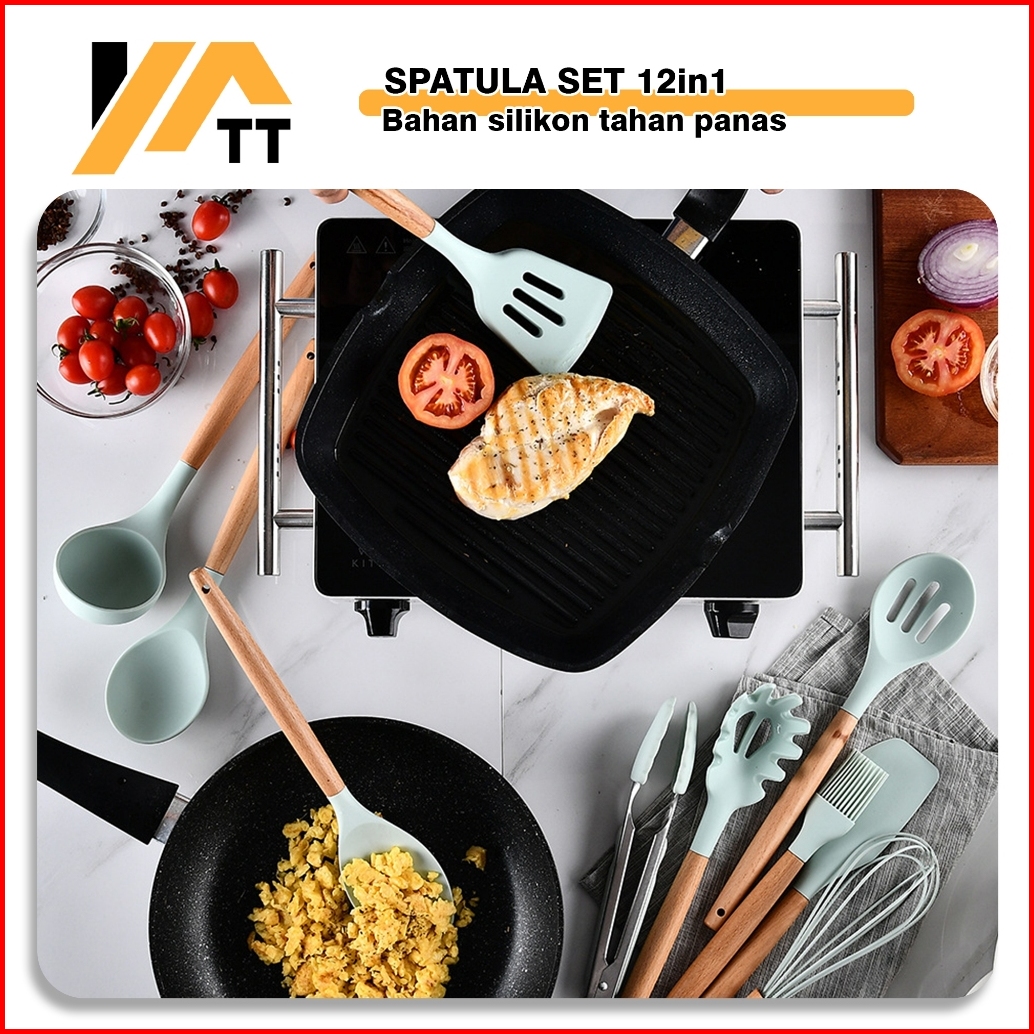 Yatt Combo Hemat Peralatan Alat Dapur Set Spatula Silikon 12in1 Tahan Panas Pisau Set Isi 6pcs