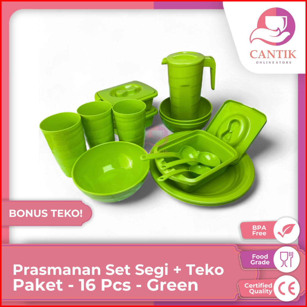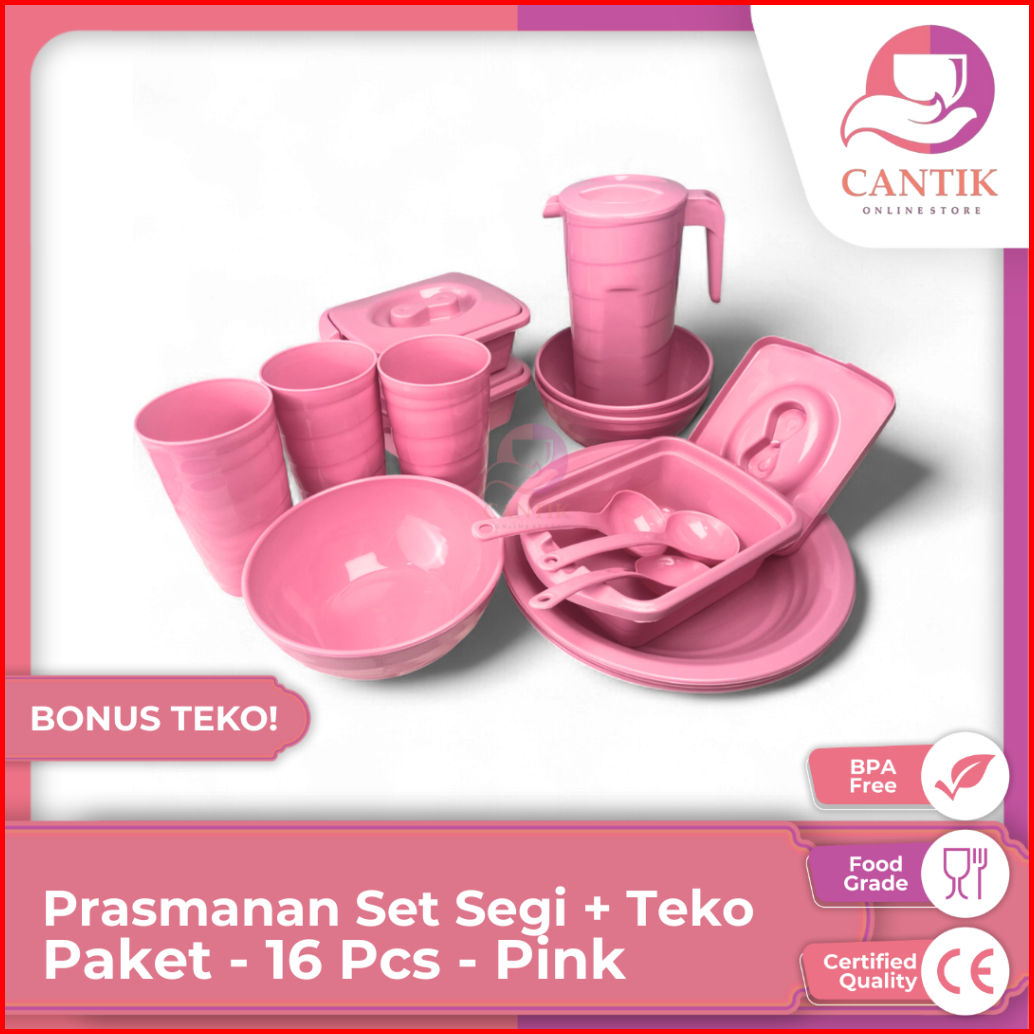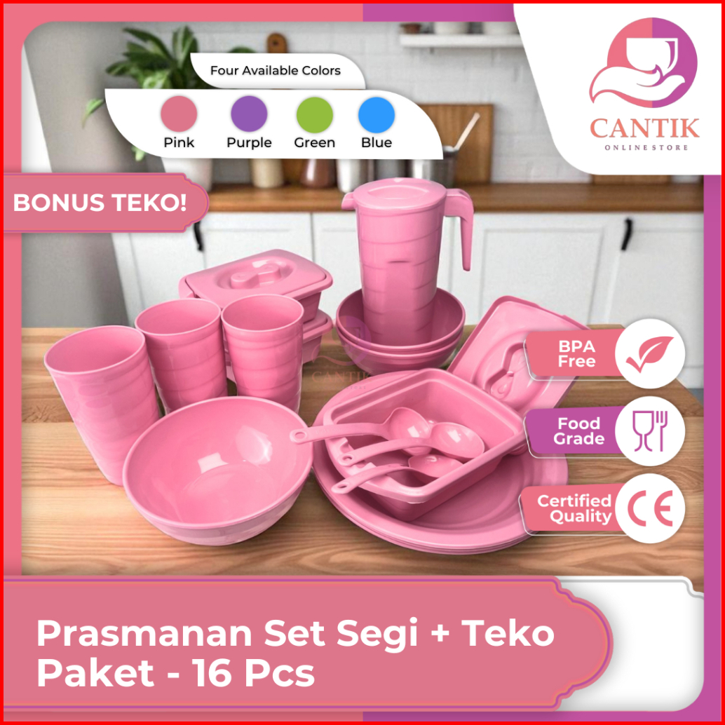 Prasmanan Mini Set Combo Teko Kulkas Isi 16 Pcs 3 Basi Mini 3 Piring 3 Mangkok Ulir 3 Gelas Ulir Centong Bonus Teko Cool