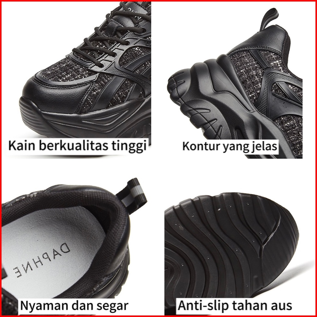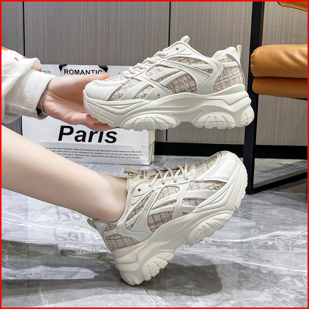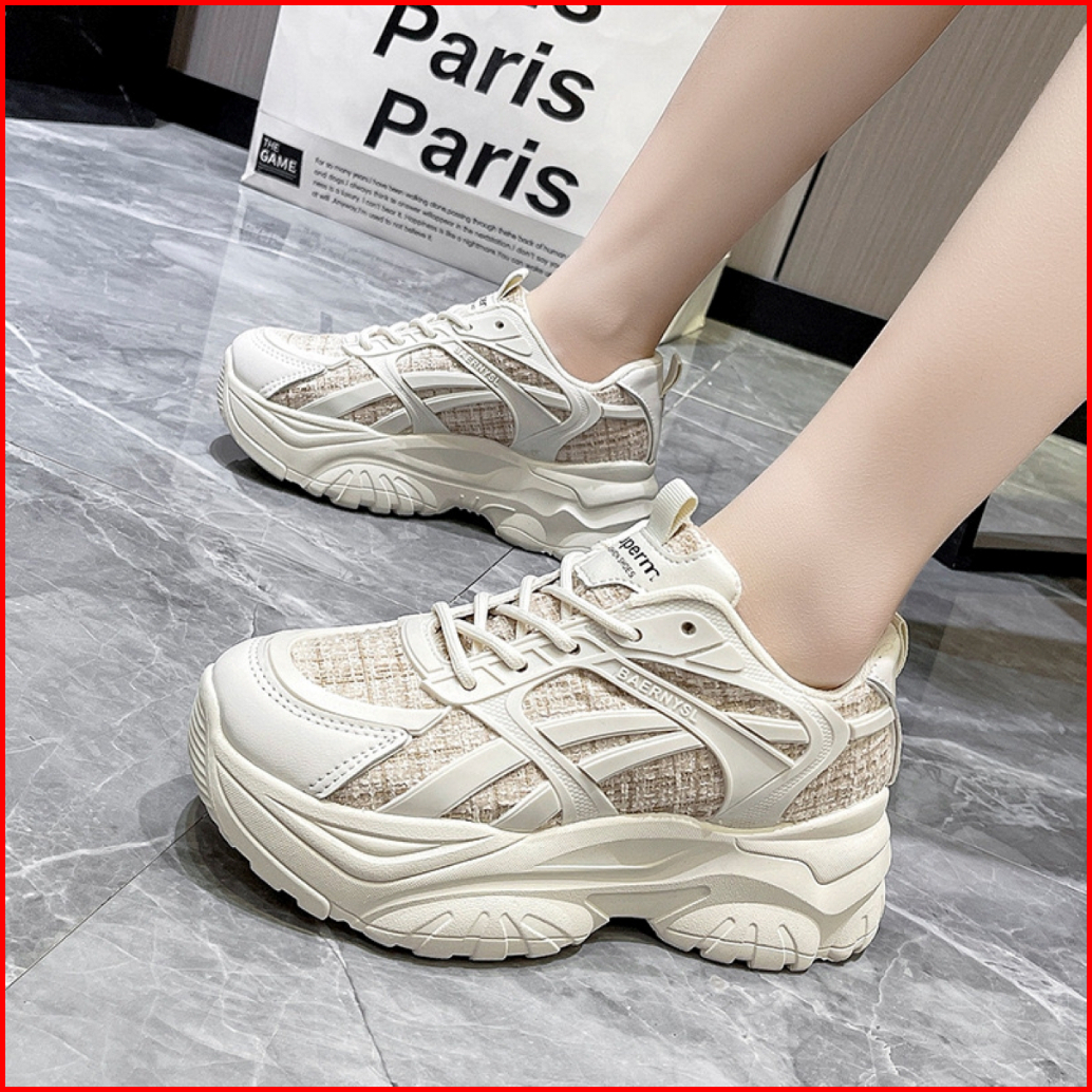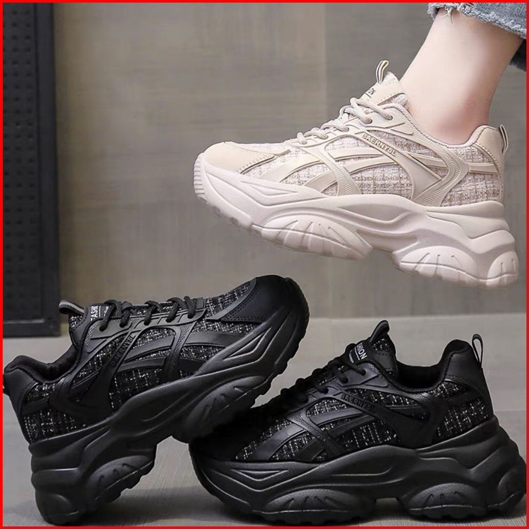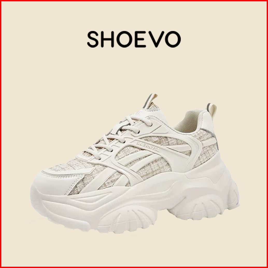 Shoevo Sneakers Wanita Woman Shoes Sepatu Olahraga Untuk Joging Sport Tinggi 5cm Hitam Beige St034