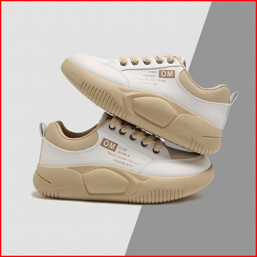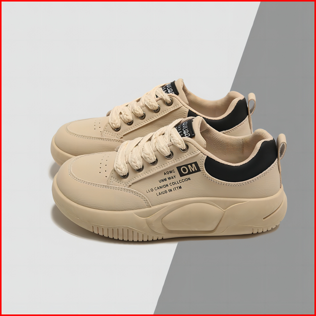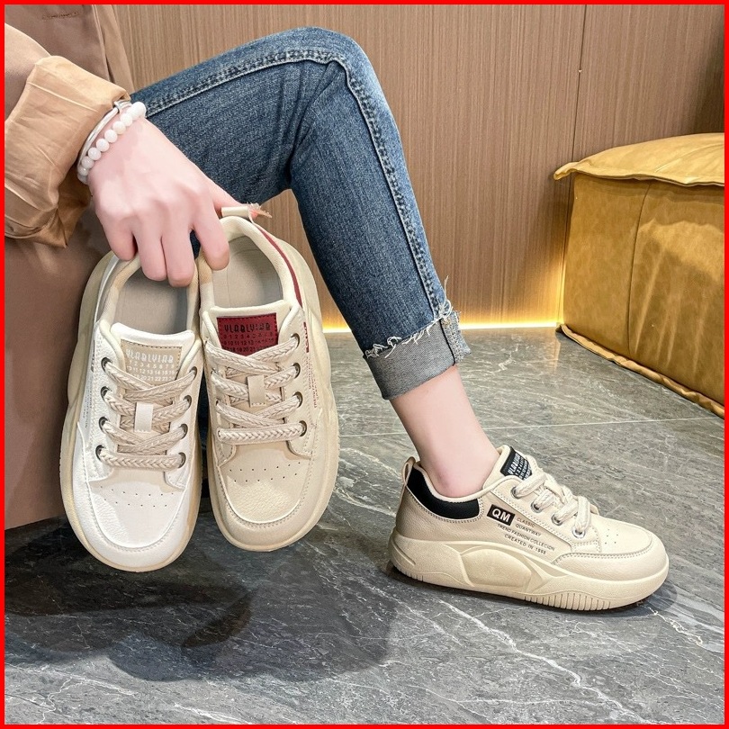 Shoevo Sneakers Olahraga Kasual Berkas Sol Tebal Berujung Bulat Sepatu Wanita Putih Hitam Merah St086