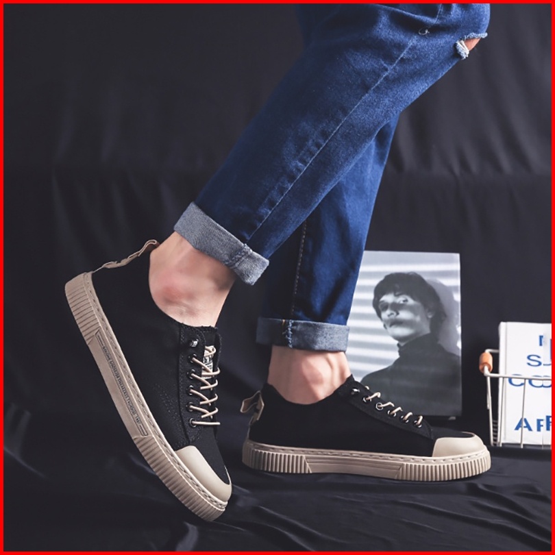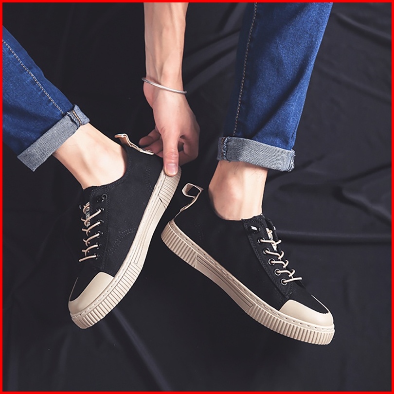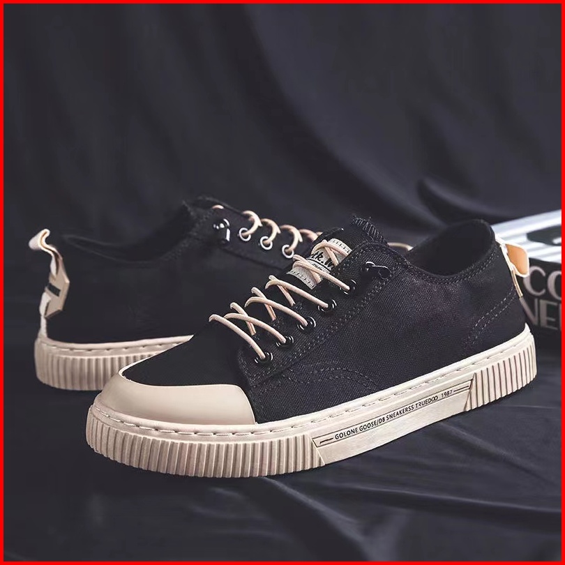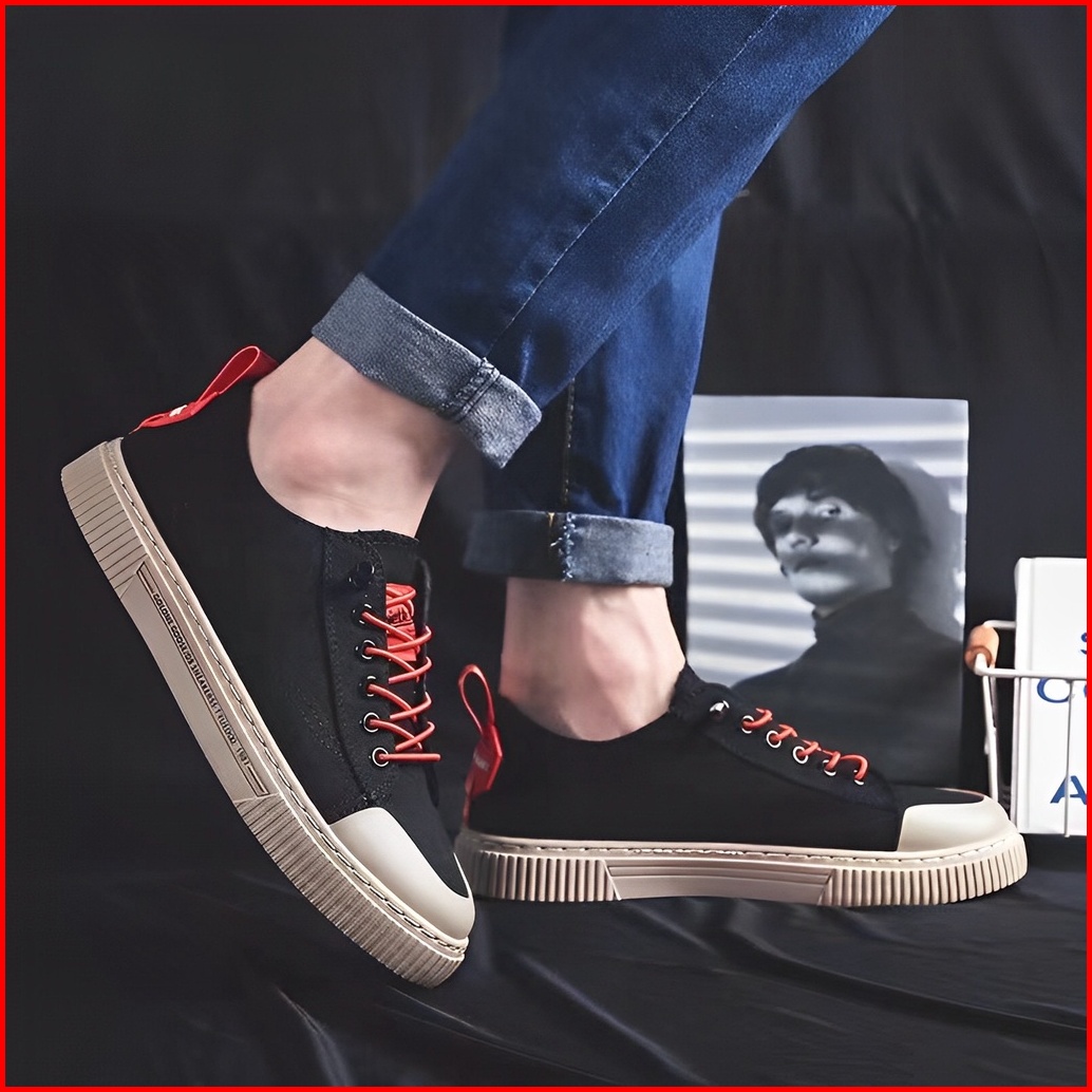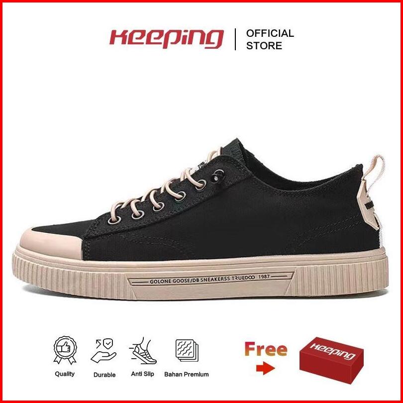 Keeping Sepatu Pria Sneakers Cowok Sepatu Kanvas Hitam Sekolah Casual Black Shoes Ksc404