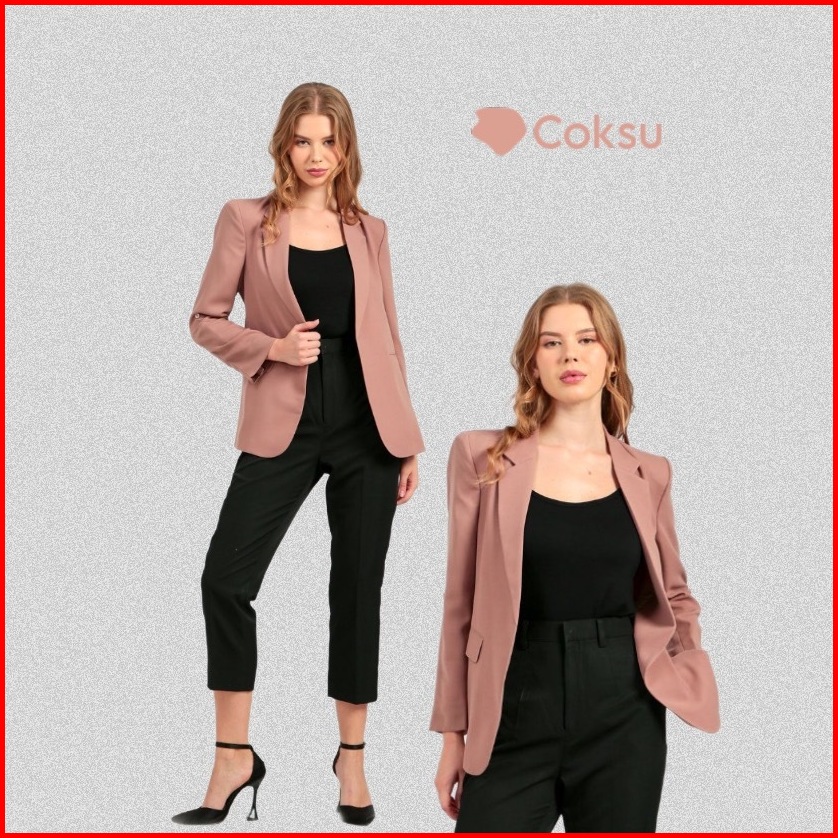 Bladies Blazer Kerah Lurus Tangan Pertama Lengan Panjang Wanita Premium Pabric