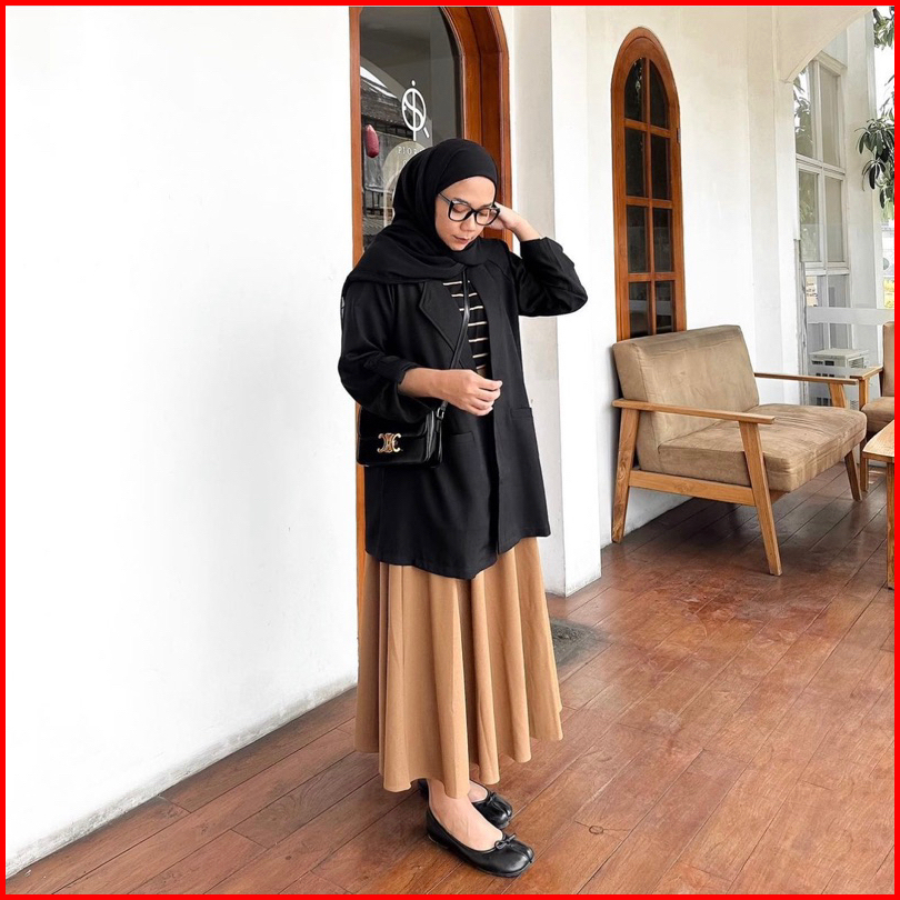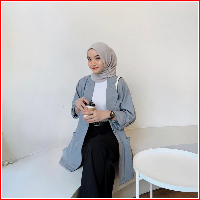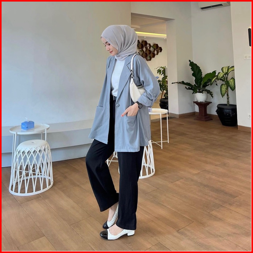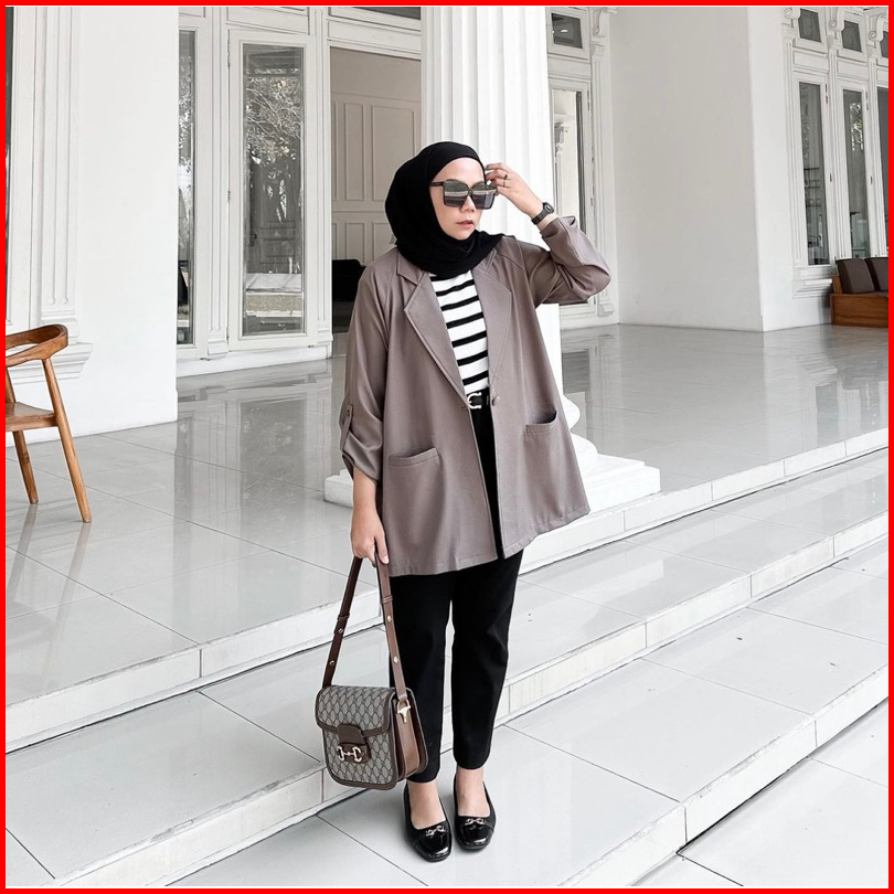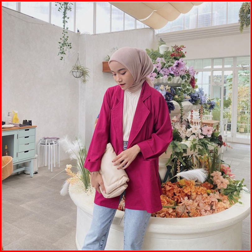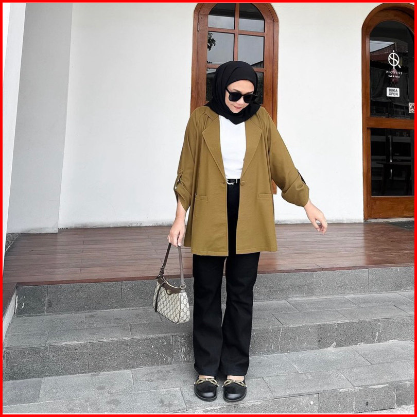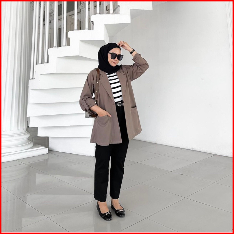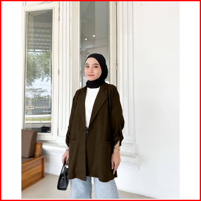 Vintage Blazer Cardigan Outer Baju Luar Motif Polos Kekinian Busui Kancing Depan