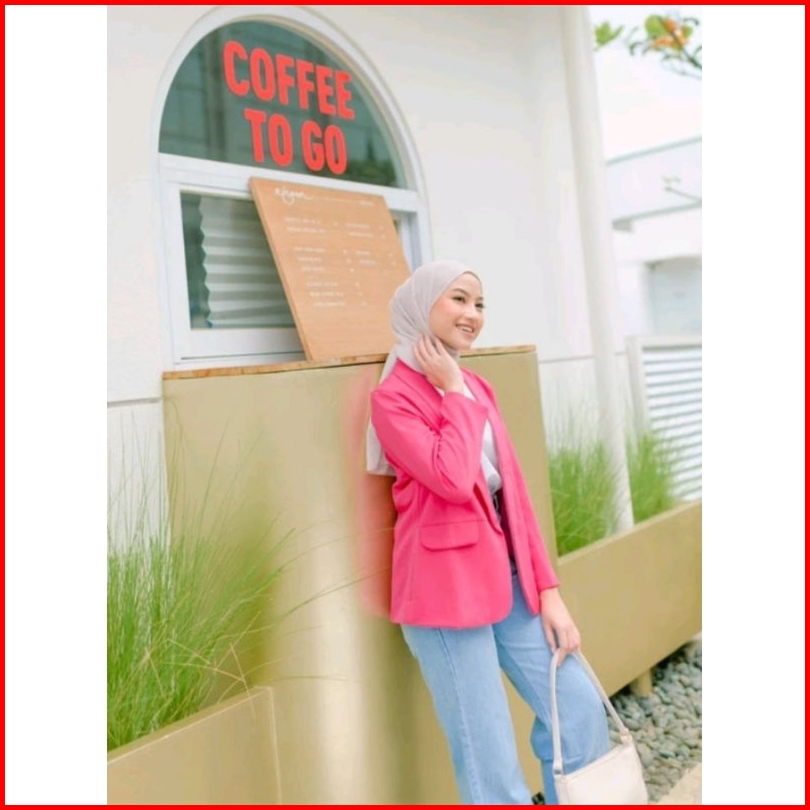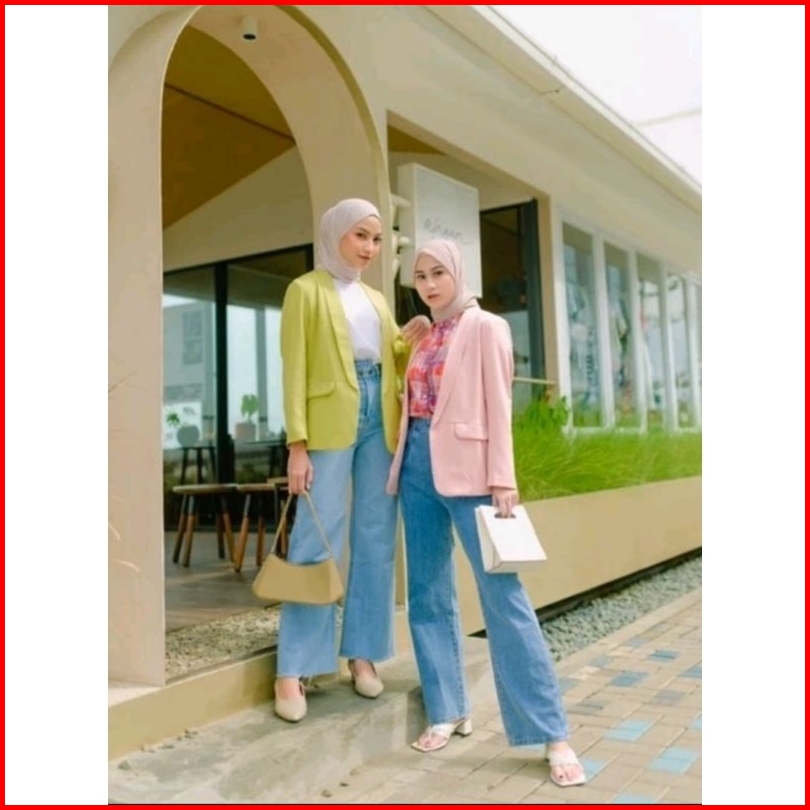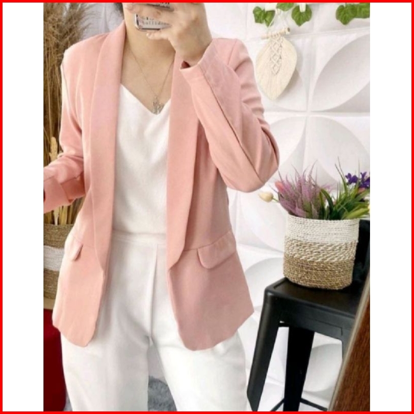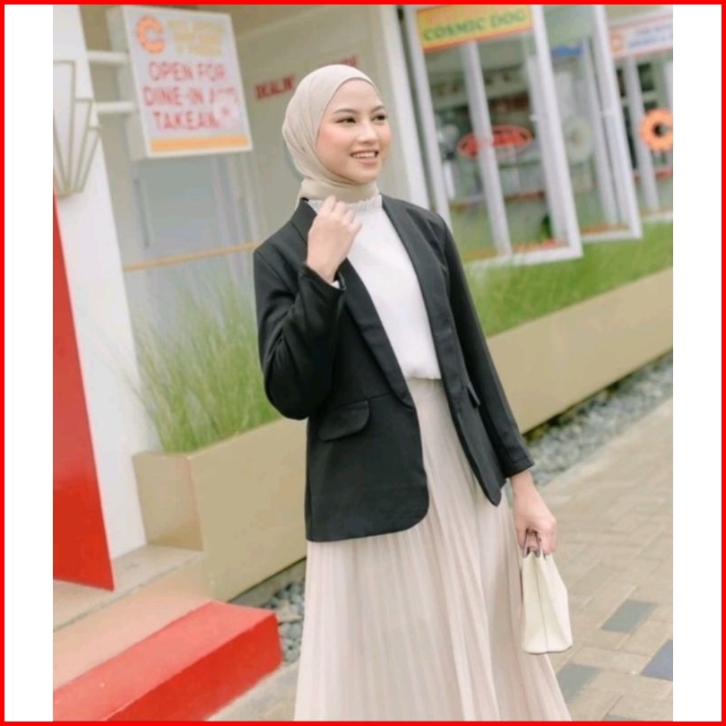 Long Blazer Scuba Panjang Blazer Wanita Kerah Tanpa Kancing Scuba Premium Terbaru Kekinian