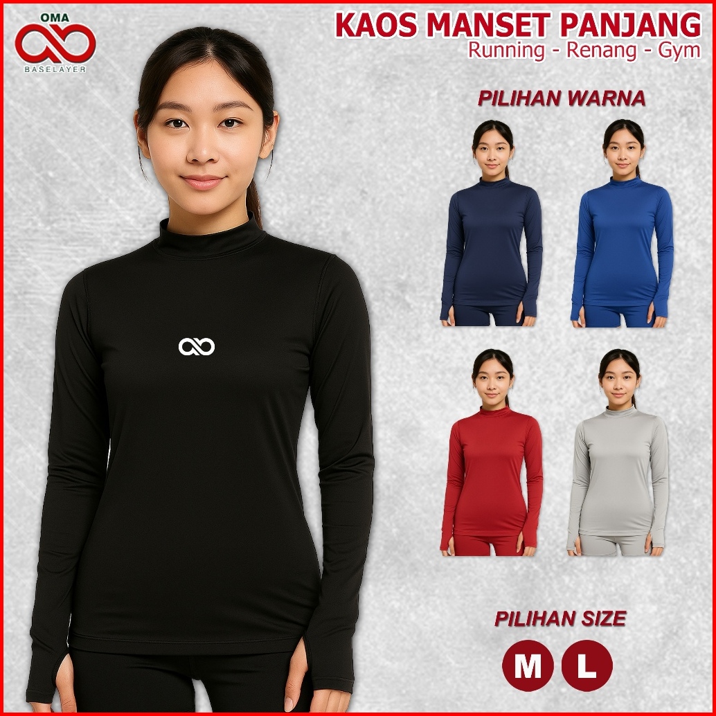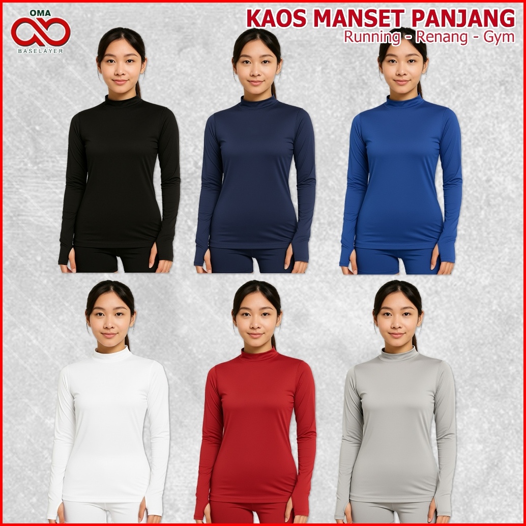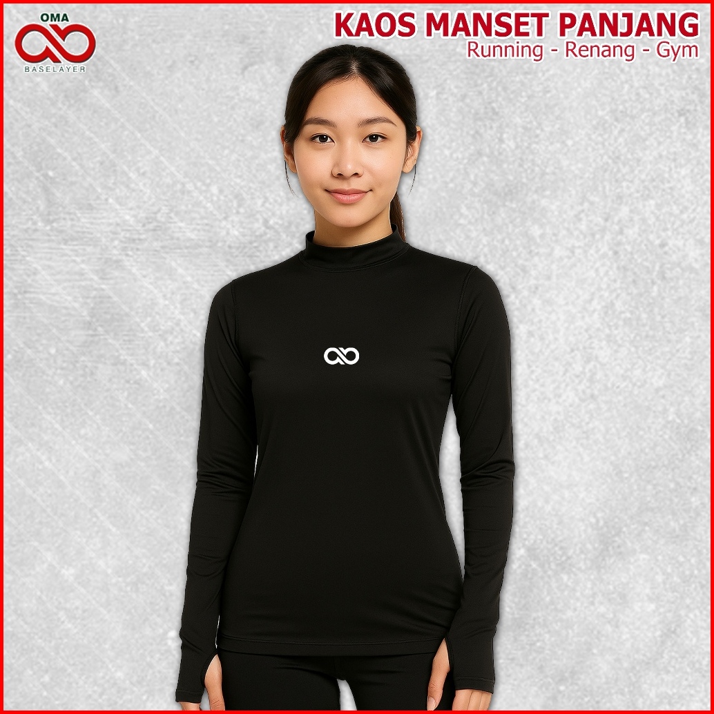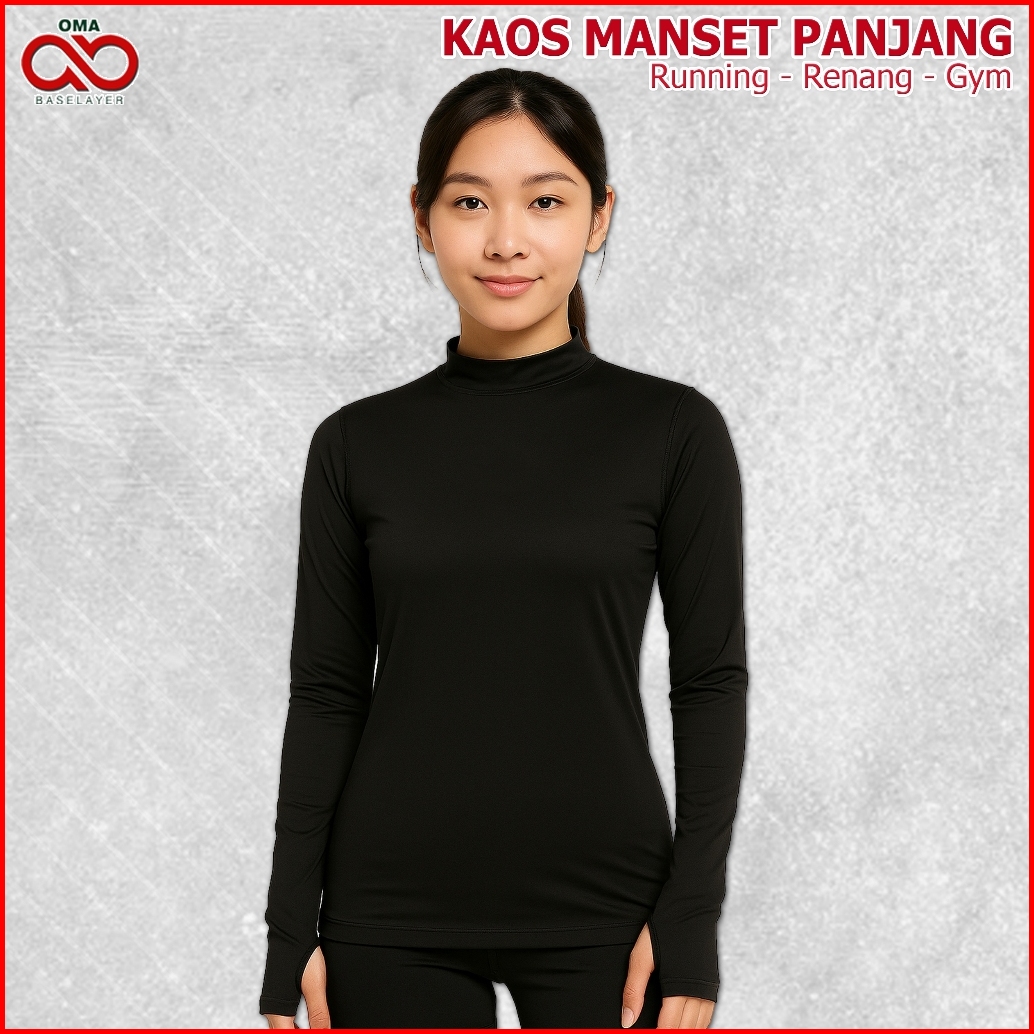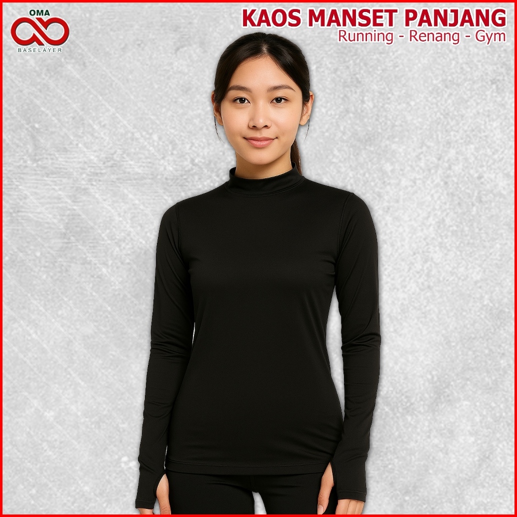 Baju Kaos Baselayer Manset Olahraga Renang Wanita Pria Lengan Panjang Bersepeda Futsal Gym Senam
