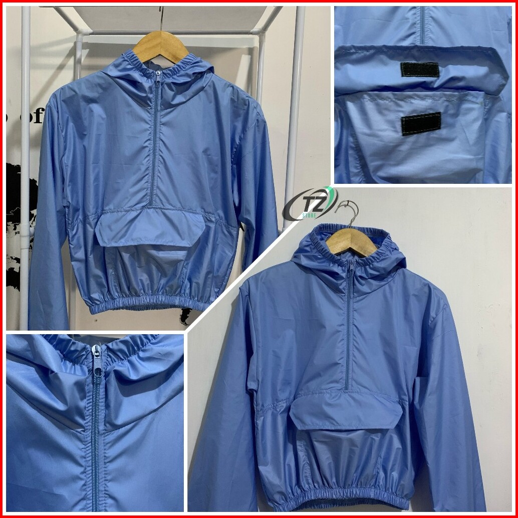 Jaket Olahraga Wanita Jaket Crop Top Polos Jaket Parasut Olahraga Crop Sauna Suit Jogging Lari Bersepeda Despo Gym Fitne