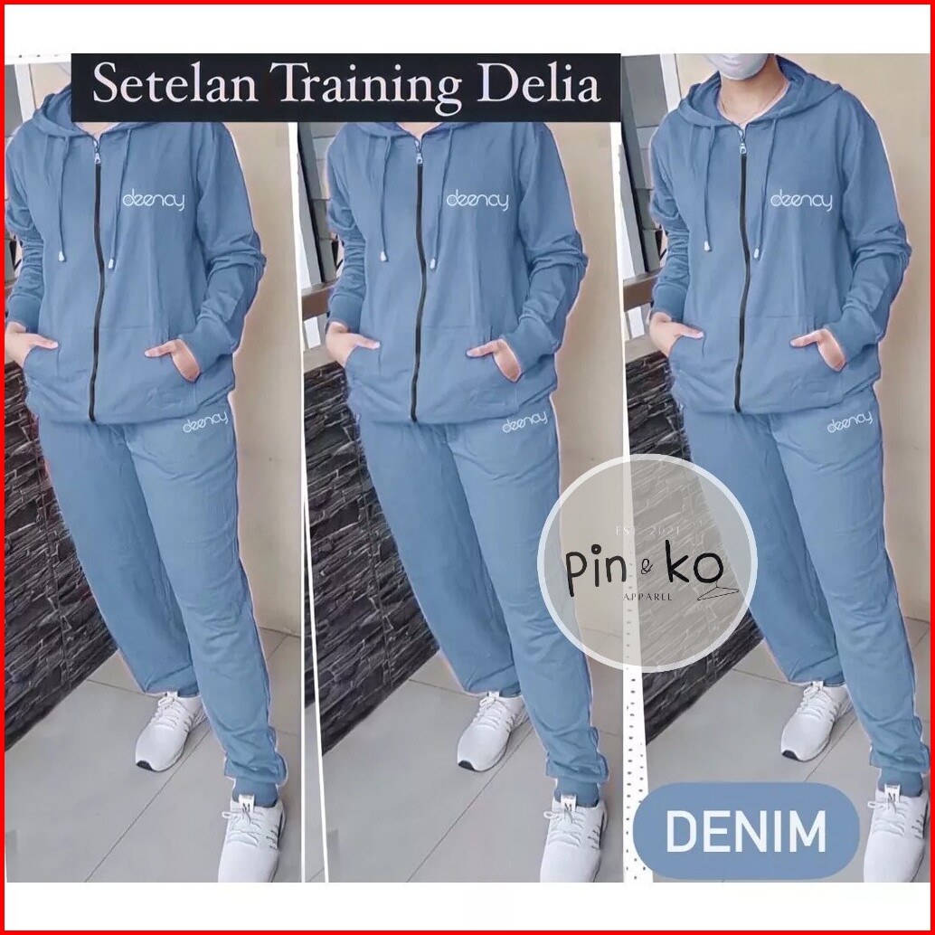 Df - Setelan Training Delia Hoodie L Xl Xxl 3xl 4xl Training Wanita Jumbo Baju Olahraga Muslim