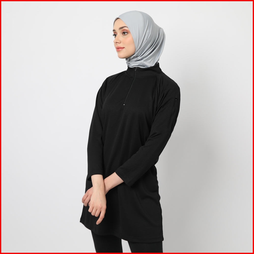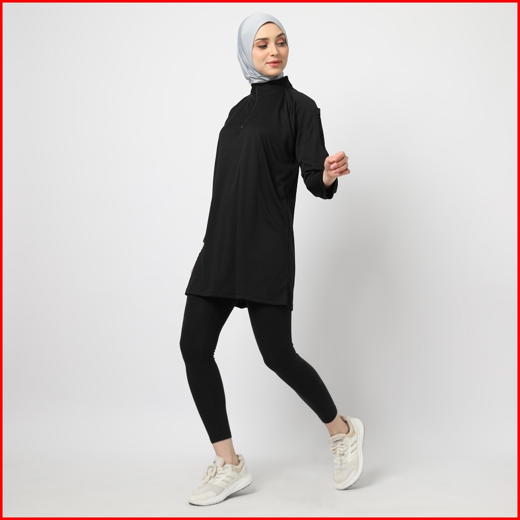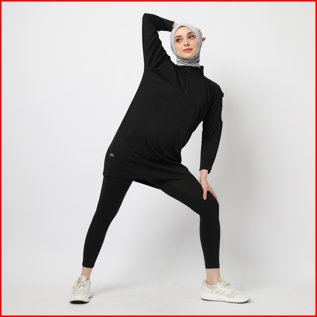 Hia Everywear Careena Top Long Sleeve Baju Olahraga Wanita Dry Fit Warna Hitam
