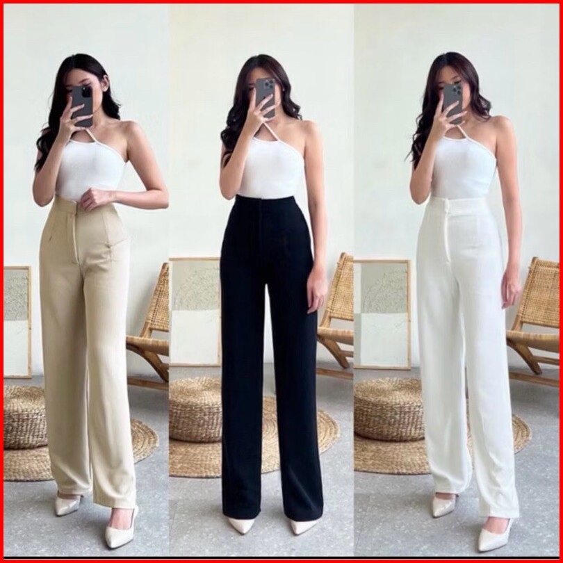 Cozie Pants - Long Cullote Basic Rib Knit - Celana Kulot Wanita Highwaist Rib Knit Premium - Highwaist Loose Pants Trous