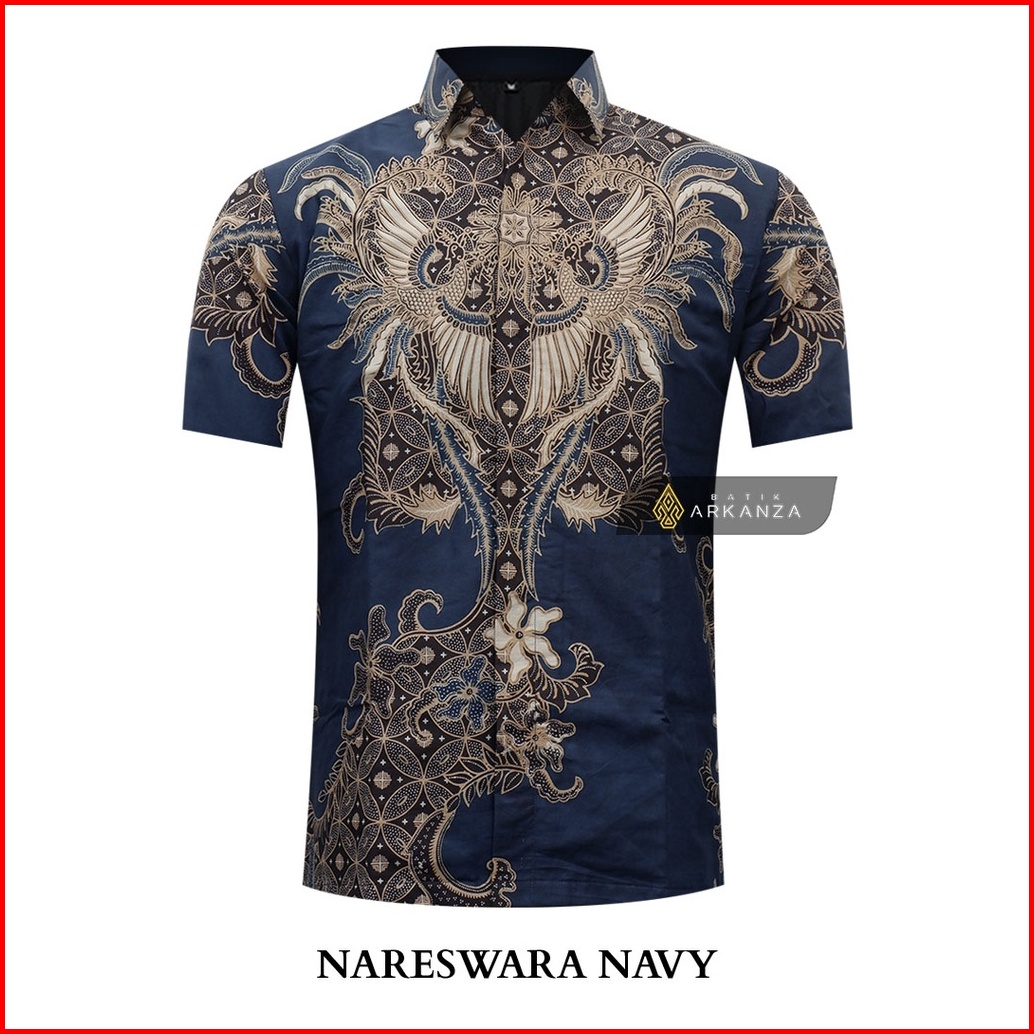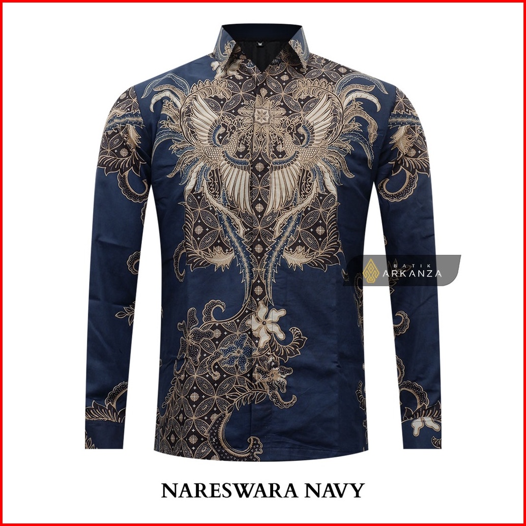 Batik Arkanza Motif Nareswara Navy Kemeja Batik Pria Lengan Panjang