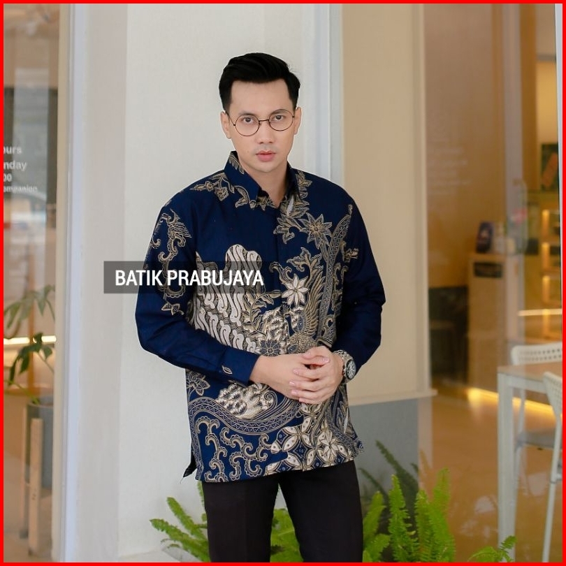 Seling Navy Kemeja Batik Pria Lengan Panjang Modern Premium Jumbo Slim Fit - Baju Batik Pria Cowok Kondangan Pesta Serag