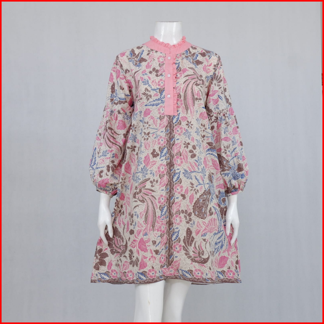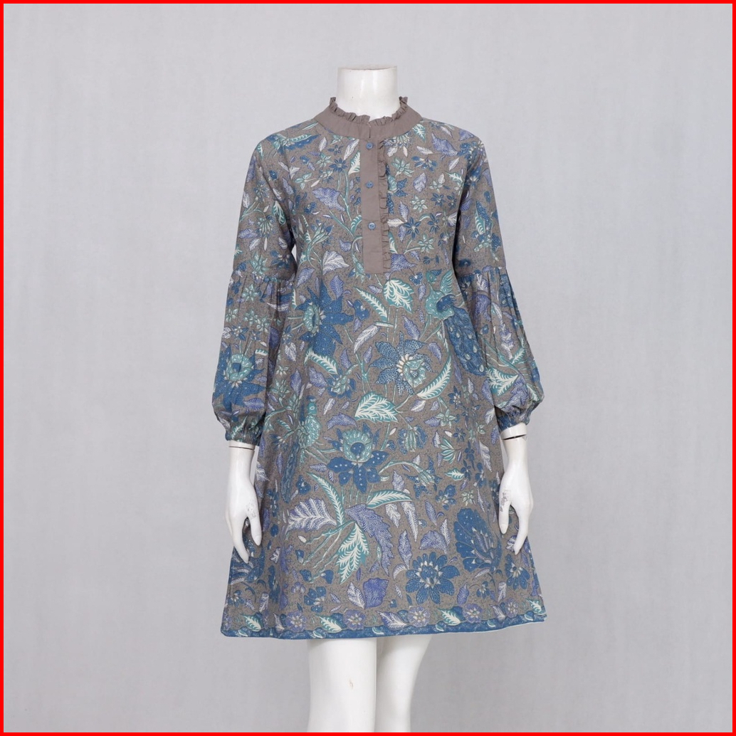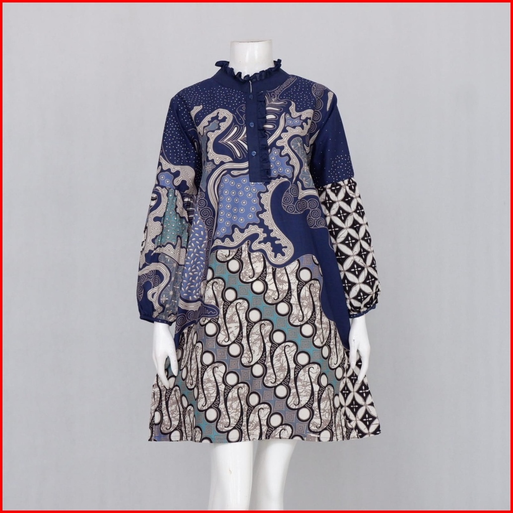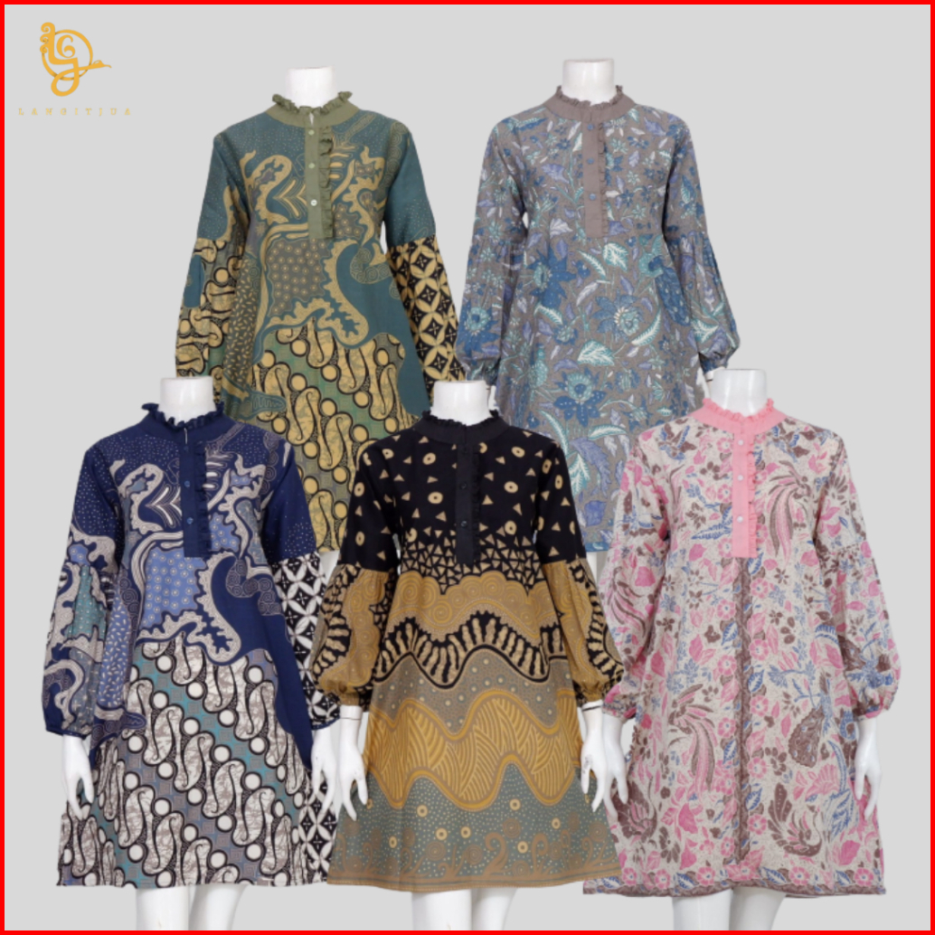 Tunik Kinanti 01 S-xl Atasan Baju Kerja Batik Wanita Motif Abstrak Modern Langitjua Batik Solo