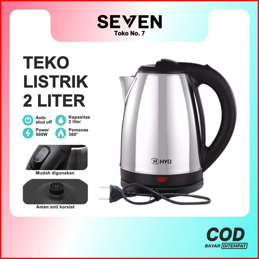 Se7en Teko Listrik 2l Pemanas Air 2.0 Liter Kettle Electric Kapasitas Stainless Steel 304
