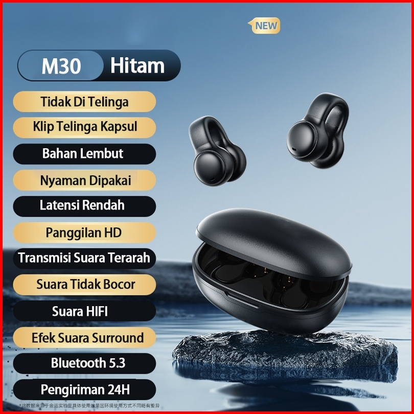 Kinglucky M30 Tws Jepit Telinga Bluetooth Bone Conduction Earphone Ear Clip Bluetooth Headset Super Long Battery Bluetoo
