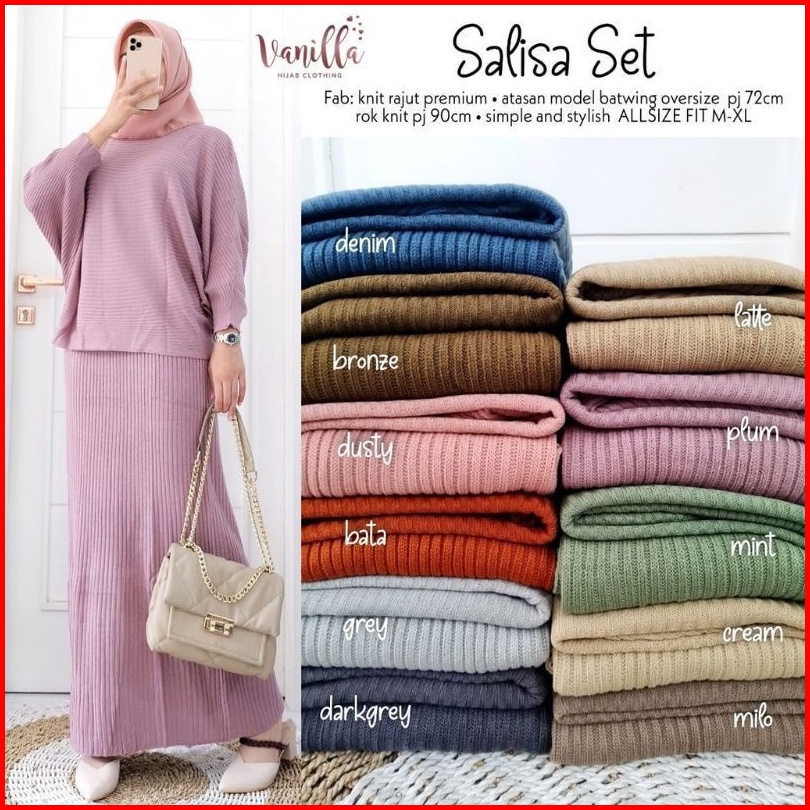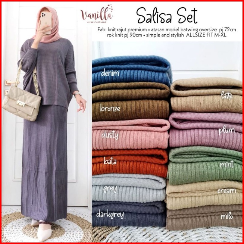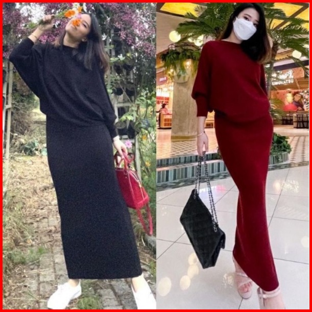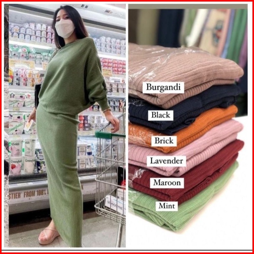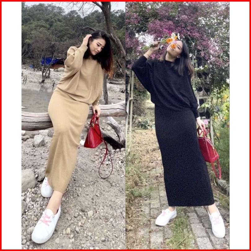 Setelan One Set Rajut Viral-lasperal Blous Batwingrajut Rok Rajut Spant Panjang Stelan Rajut Wanita