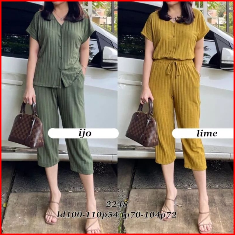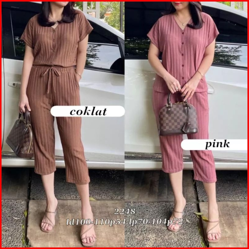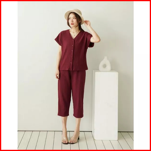 Set Andin Wanita Knit Horner - Setelan Full Kancing Lengan Pendek Celana Tanggung Kekinian Terbaru