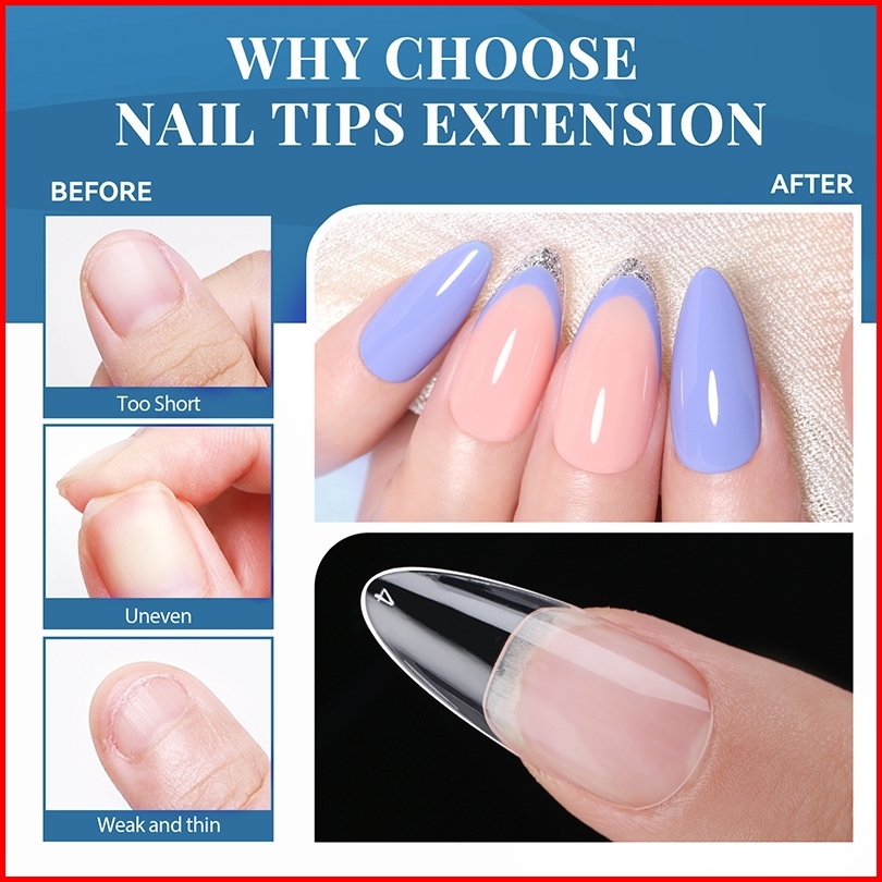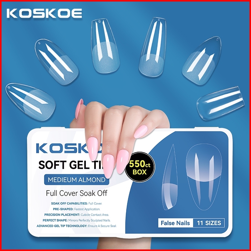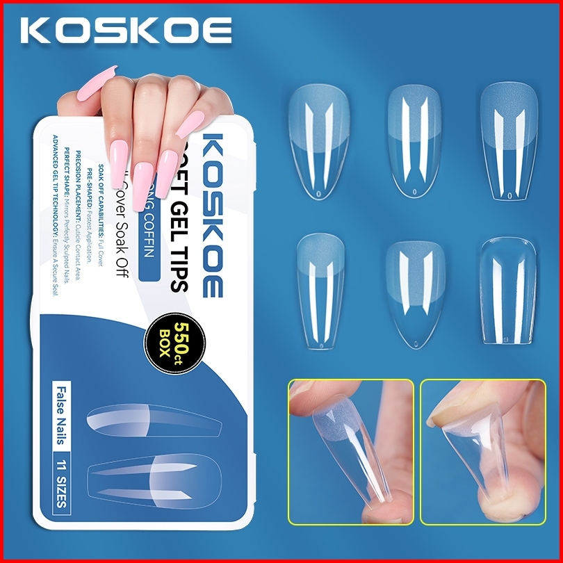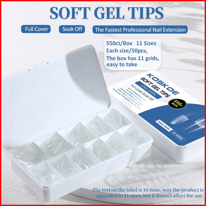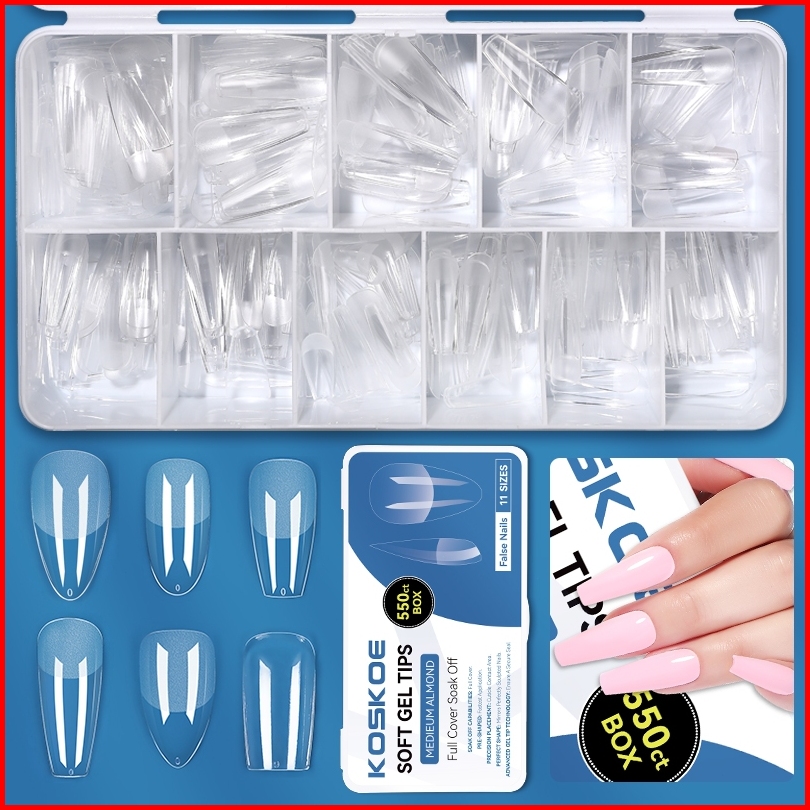 Ur Sugar Soft Gel Tip 550pcs Full Buff Nail Extension Kuku Palsu Uv Untuk Nail Art
