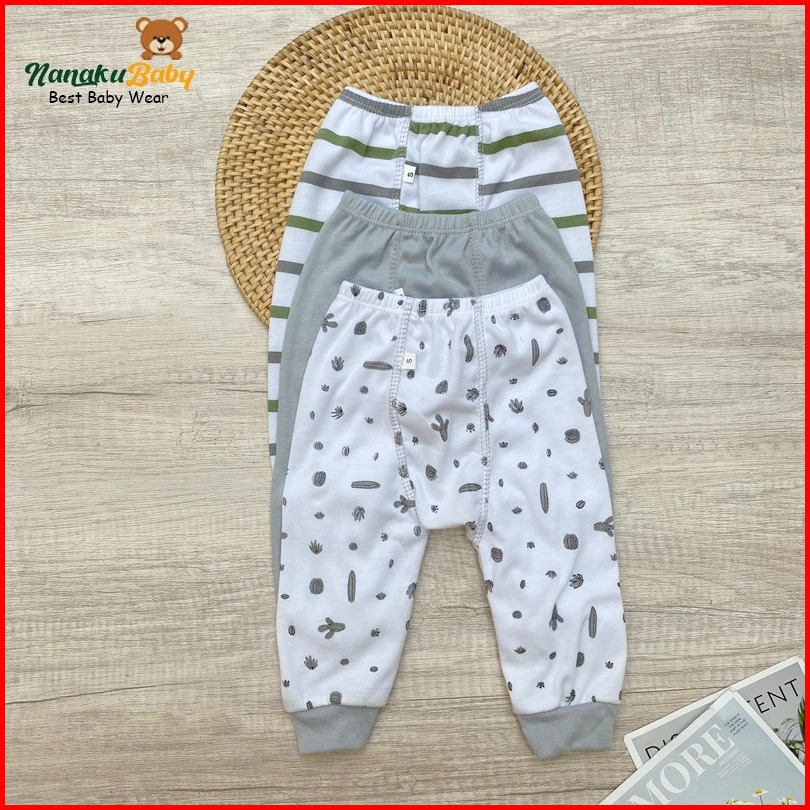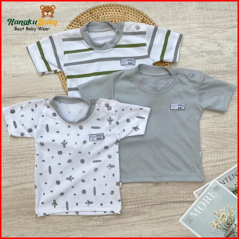 Nanaku Baby - Isi 3 Setelan Baju Bayi Lengan Pendek Celana Panjang Series Grey Usia 0-18 Bulan