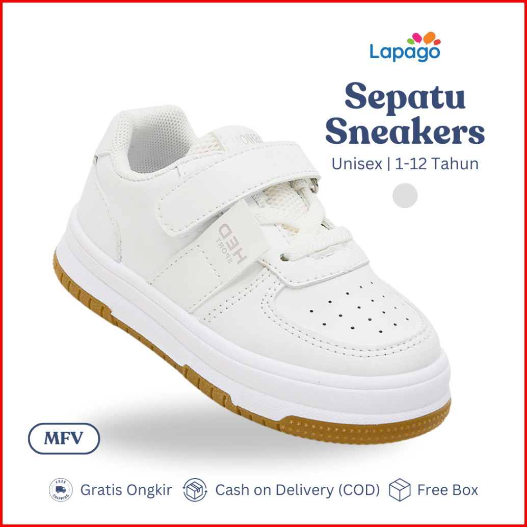 Lapago Free Box Sepatu Sneakers Casual Anak Laki Laki Perempuan Putih Usia 1 - 12 Tahun Type Mfv