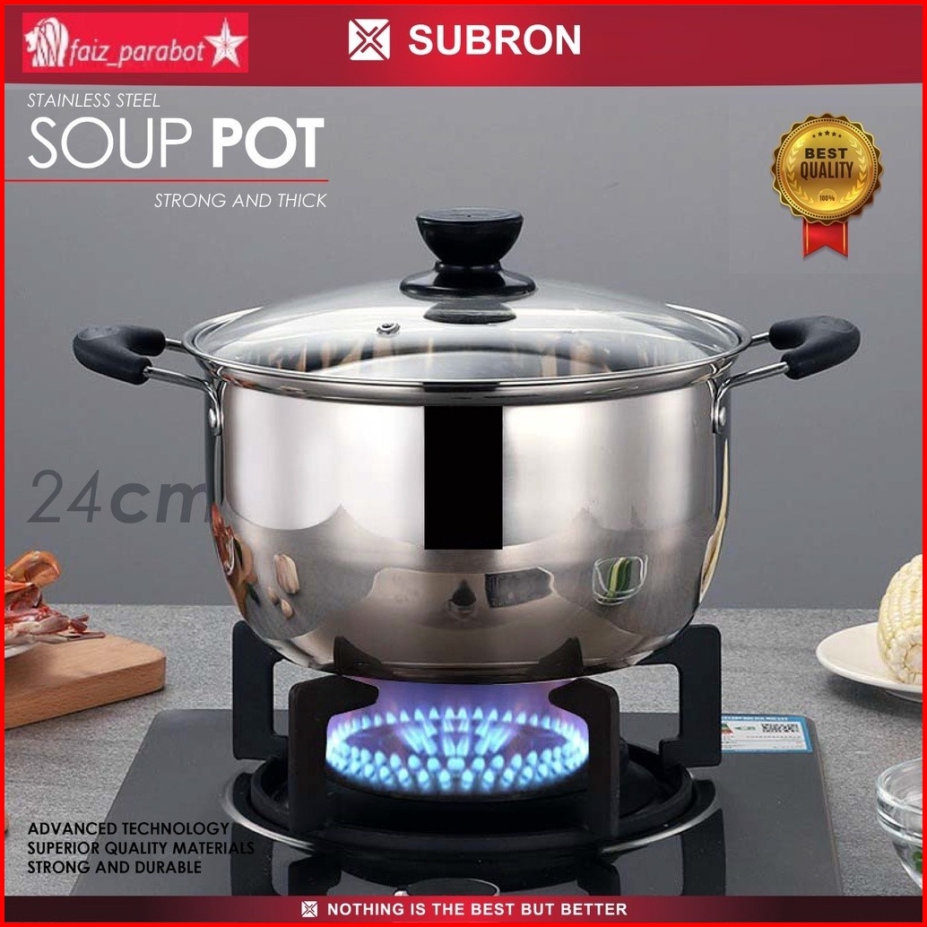 Yys 26cm-sup Panci Mie Susu Sayur Soup Soto Stainles 20 22 24cm Dengan Tutup Kaca
