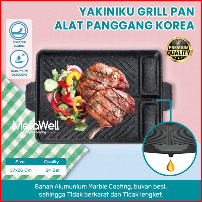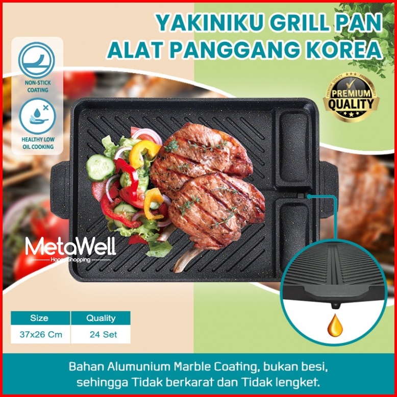 Meta Yakiniku Grill Pan Gm-2157 Panggangan Multifungsi Murah Anti Lengket Alat Panggang Sate Ayam Daging