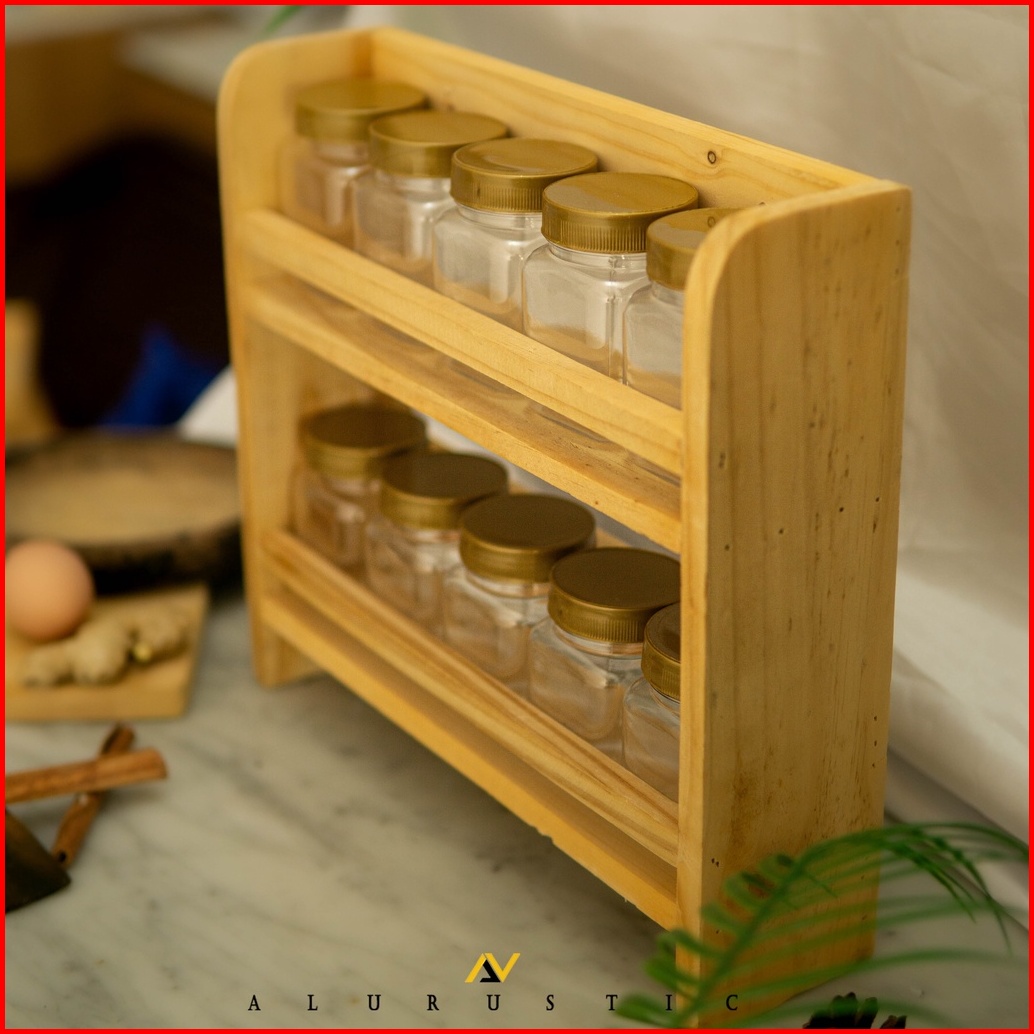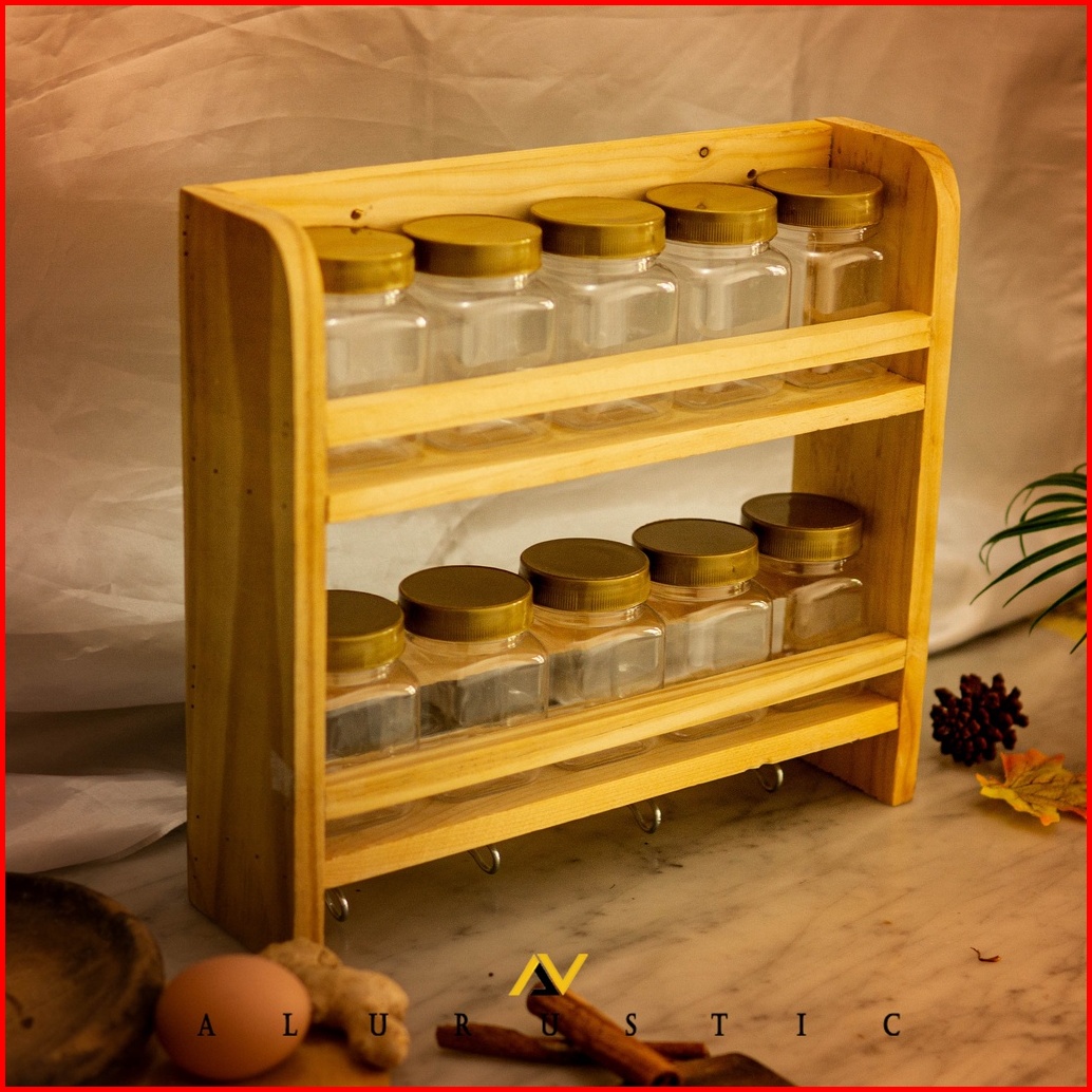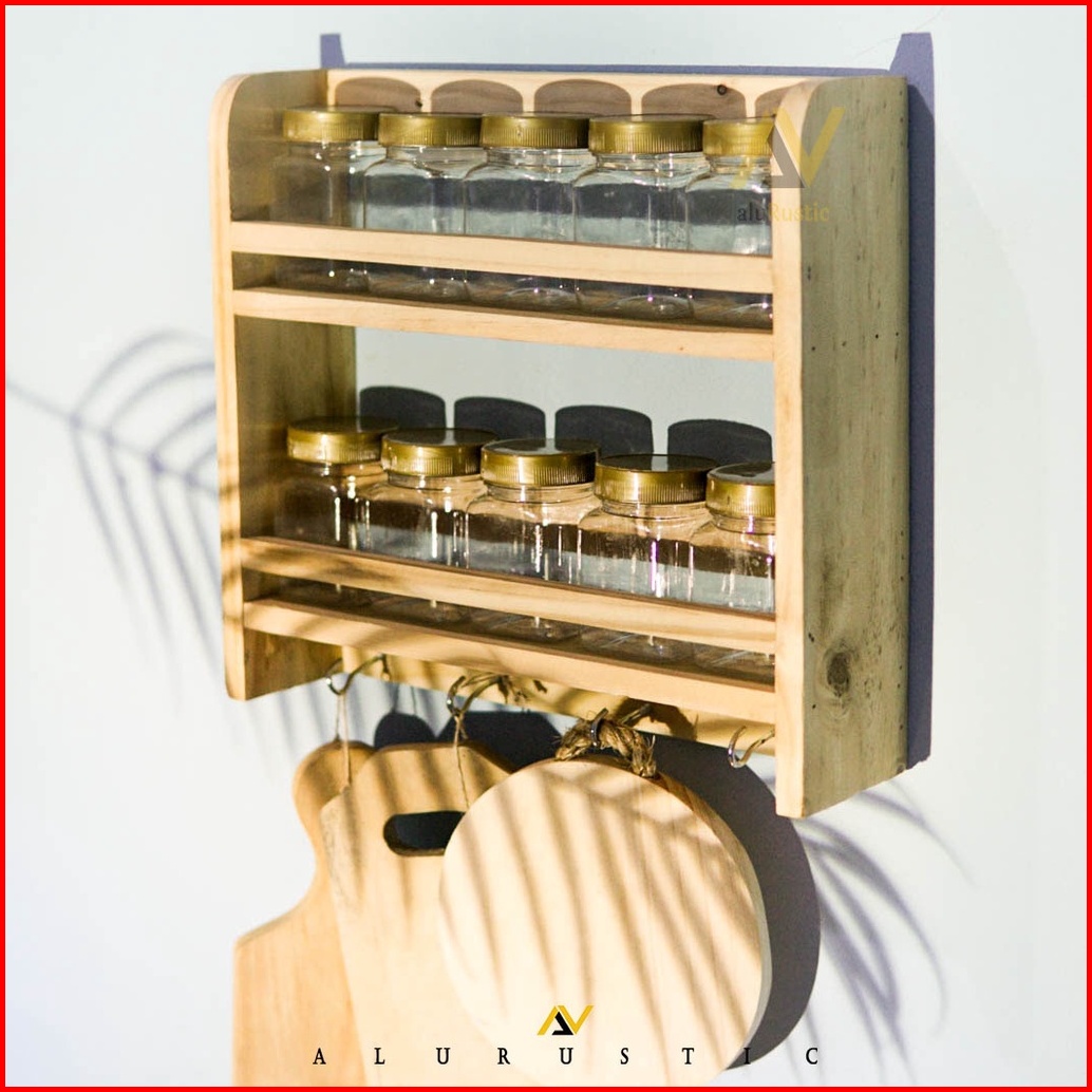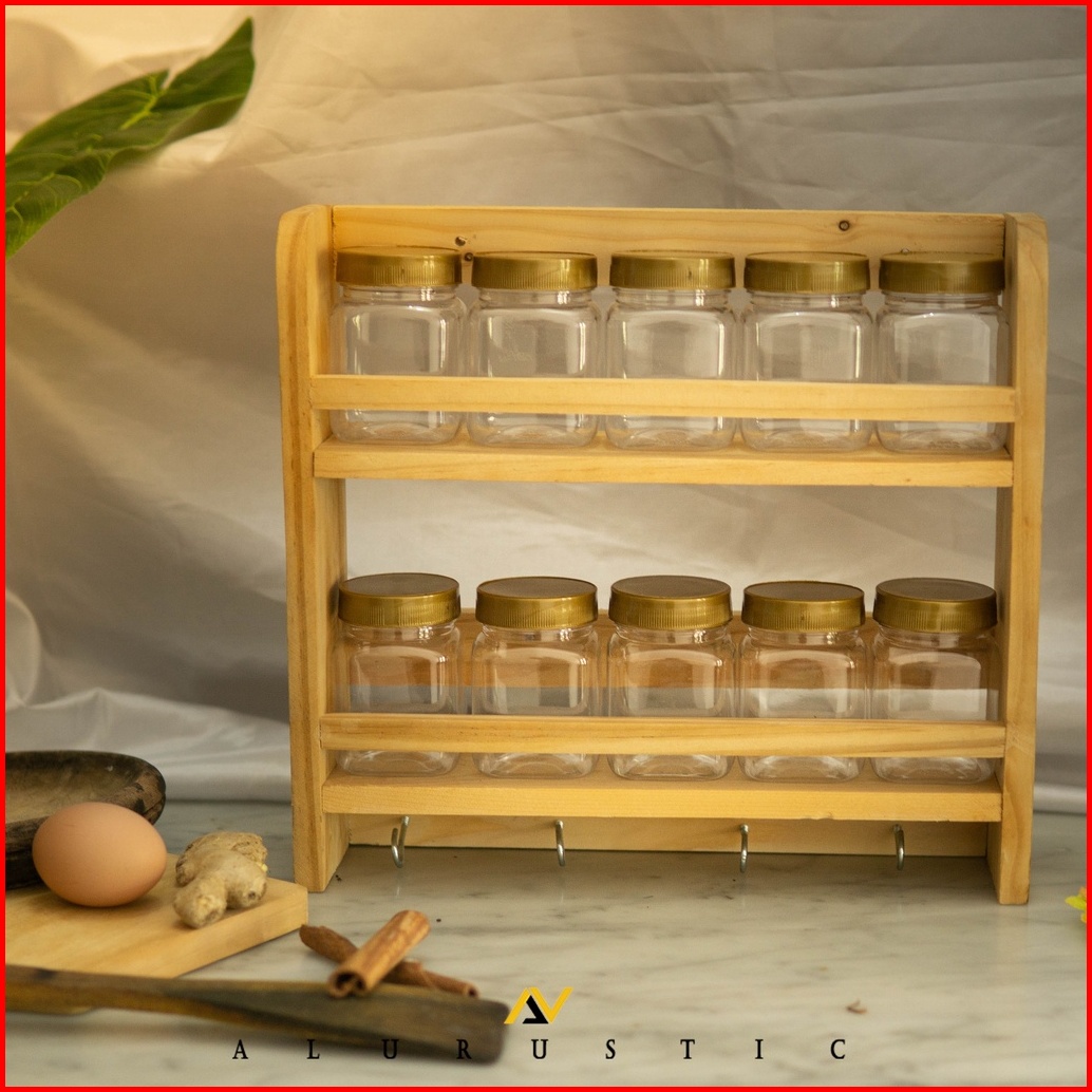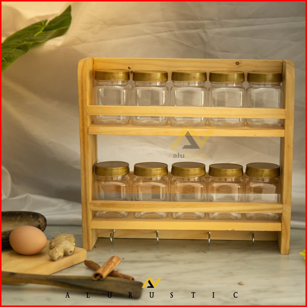 Rak Bumbu Kayu 10 Toples Bumbu Rak Serbaguna Rak Kayu Jati Belanda Dekorasi Rustic