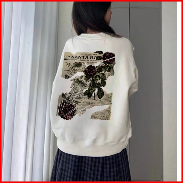 Forteid Sweater Lengan Panjang Oversized Mawar Switer Wanita Oversize Kaos Korean Style Sweater Oversize Crewneck Wanita