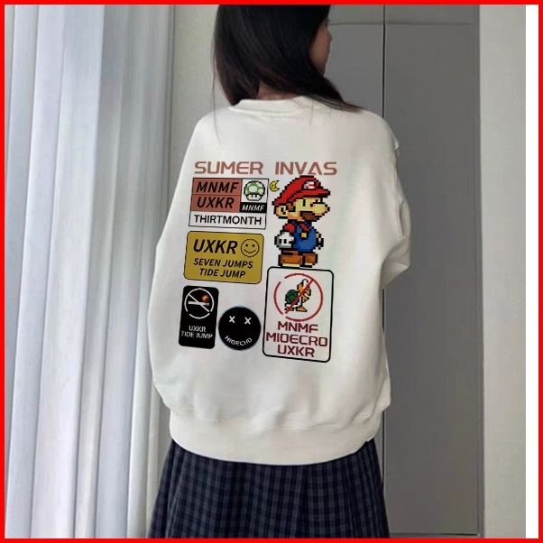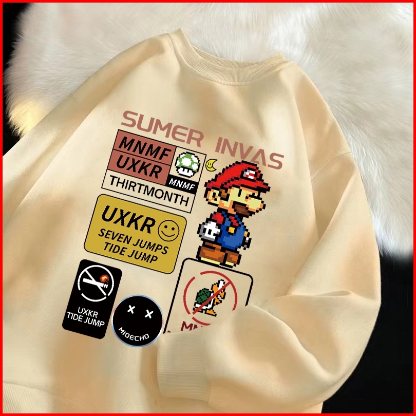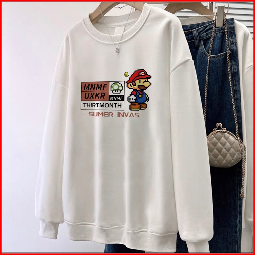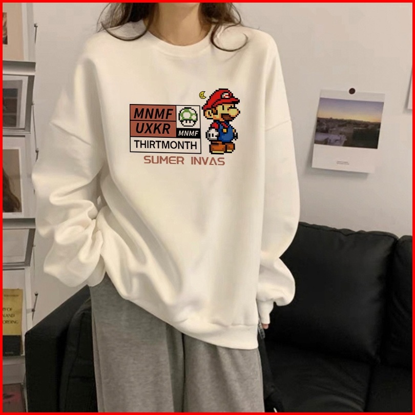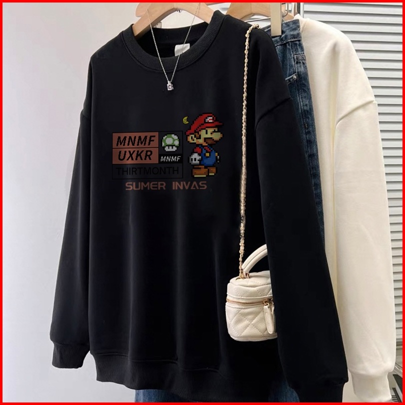Forteid Sweater Lengan Panjang Oversized Street Style Korean Style Switer Wanita Oversize Kaos Super Mary Korean Style S