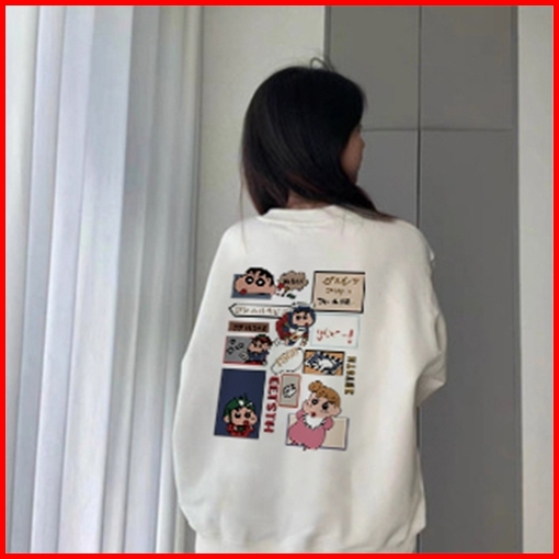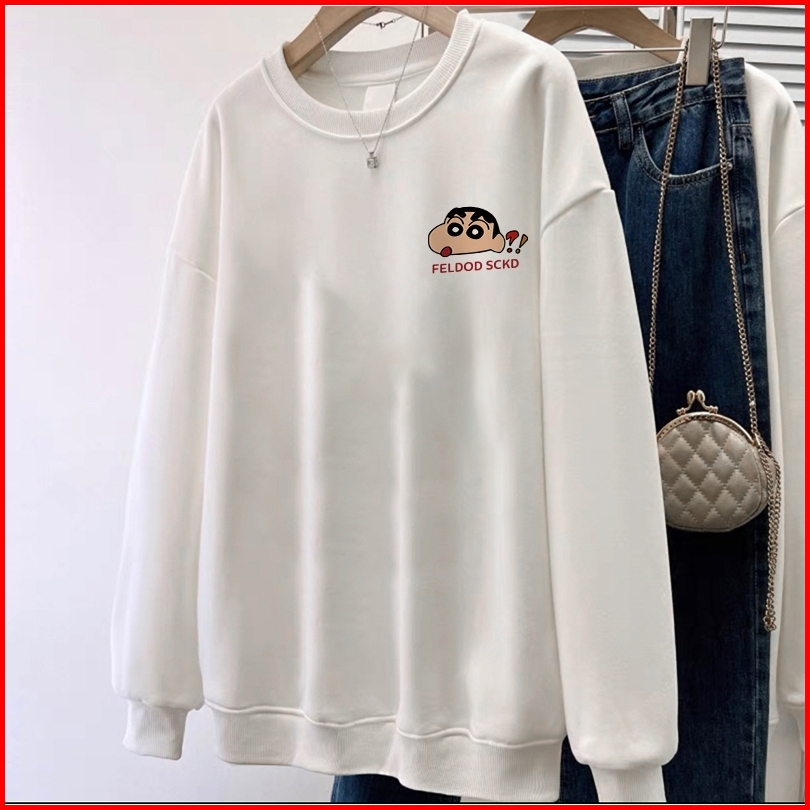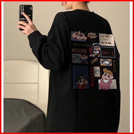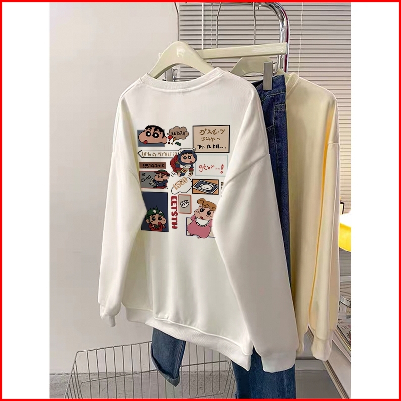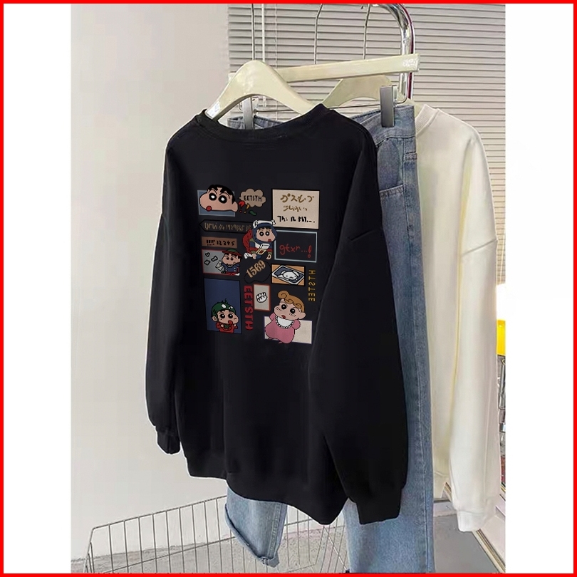 A1095 Forteid Kaos Crayon Shinchan Family Portrait Oversize Sweater Hitamt Sweater Oversize Wanita Hoodie Crewneck Casua