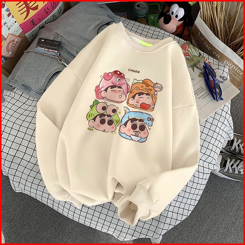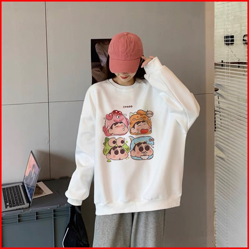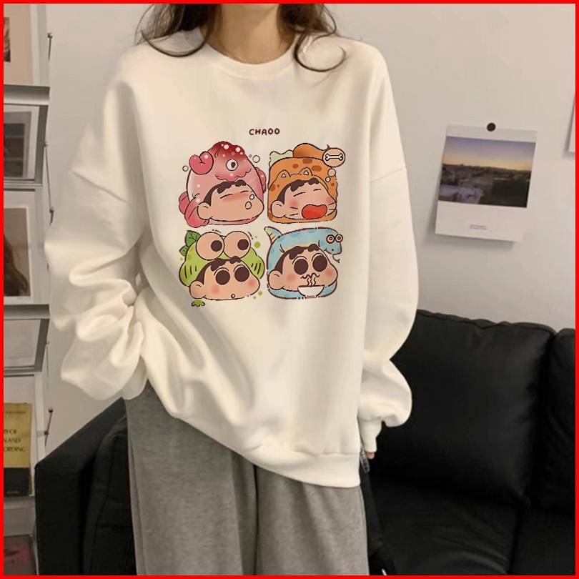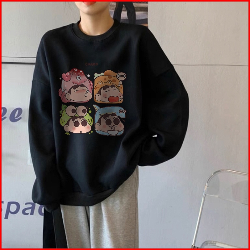 Forteid Sweater Lengan Panjang Oversized Street Style Korean Style Switer Wanita Oversize Cetakan Labubu Yang Lucu Overs